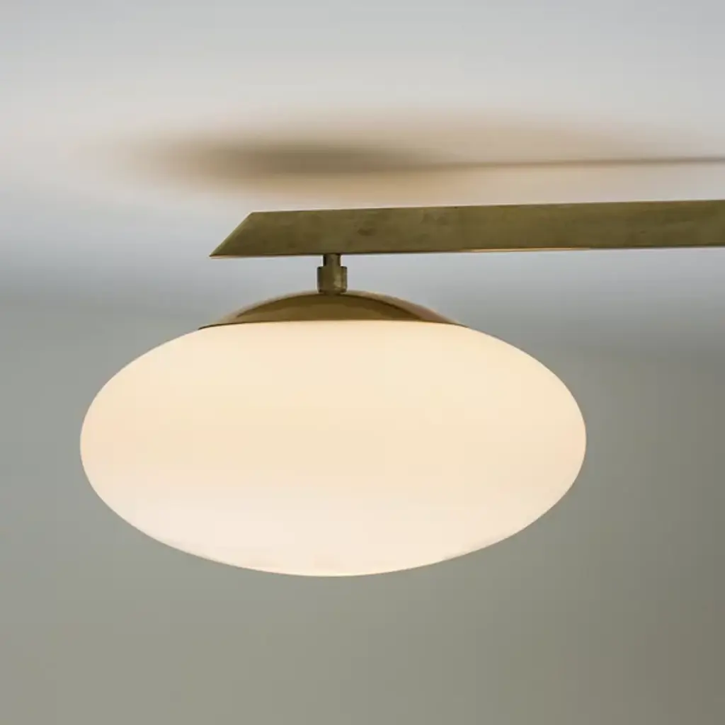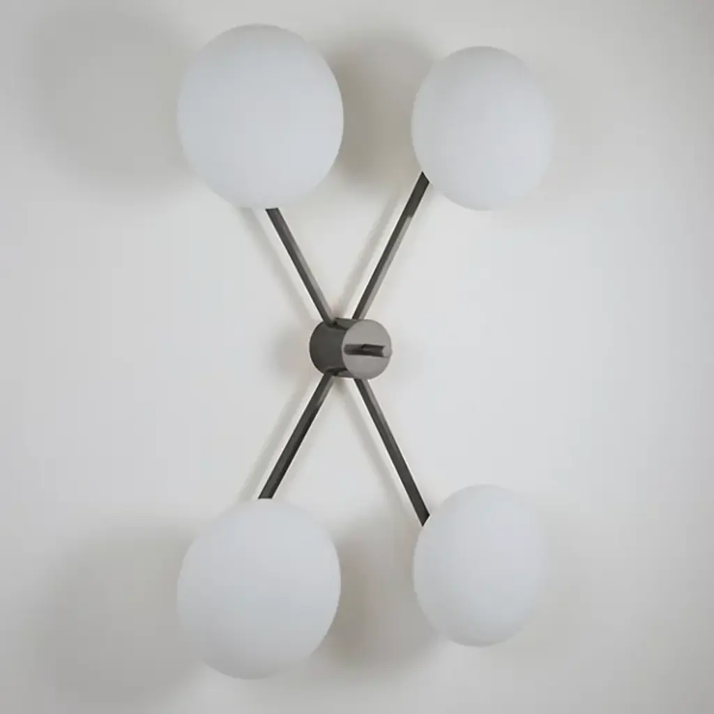 Delicate and outstretched like a butterfly's mesmerizing wings. Like its namesake, the Butterfly Wall / Flushmount from Design For Macha draws one's attention through its sense of weightlessness and familiar beauty. Creator Design For Macha celebrates Italian craftsmanship with each design. This handmade piece looks natural in various settings thanks to its wall or ceiling-mounting backplate. Crafted in brass, a group of fine arms shoots out to create an unforgettable x-shaped silhouette. Murano opaline glass globes appear to defy gravity atop the arms with plump, airy shapes. These globes present a soft, spacious, and seductive light.