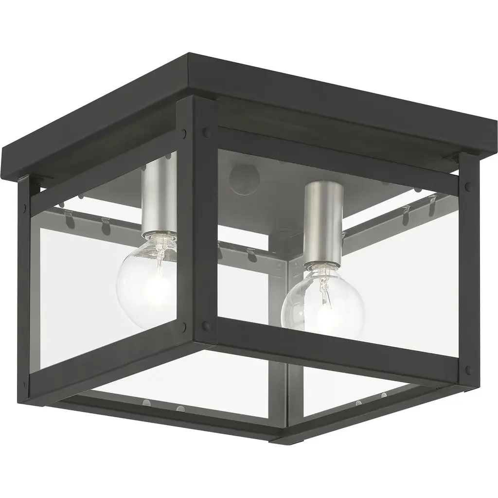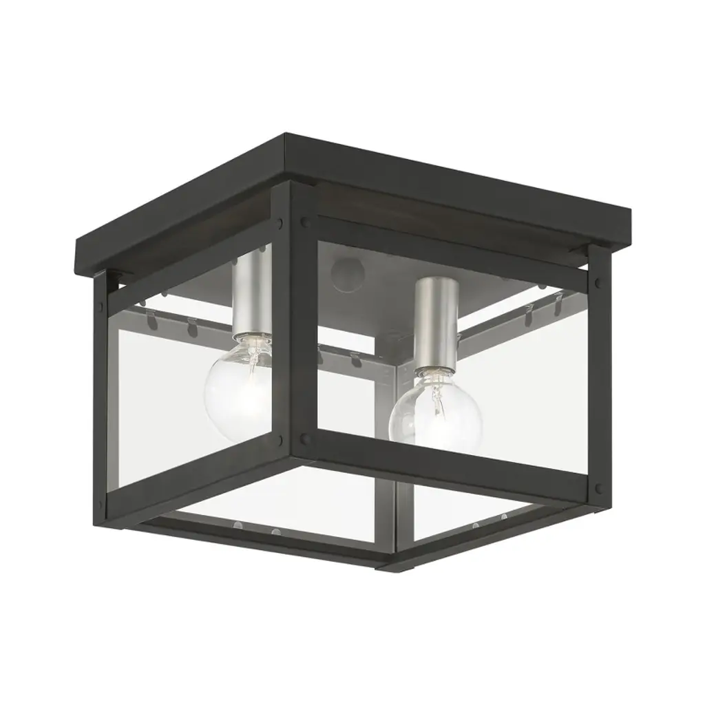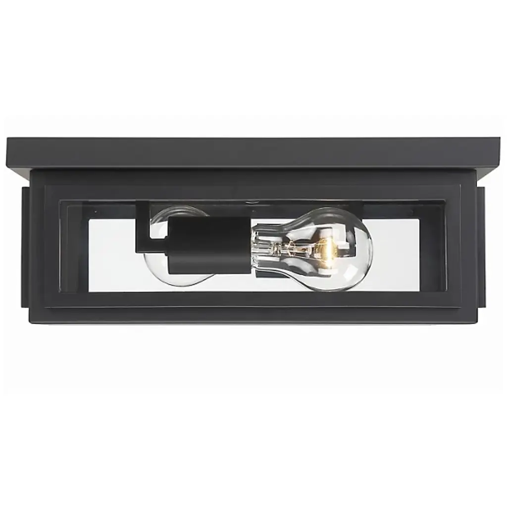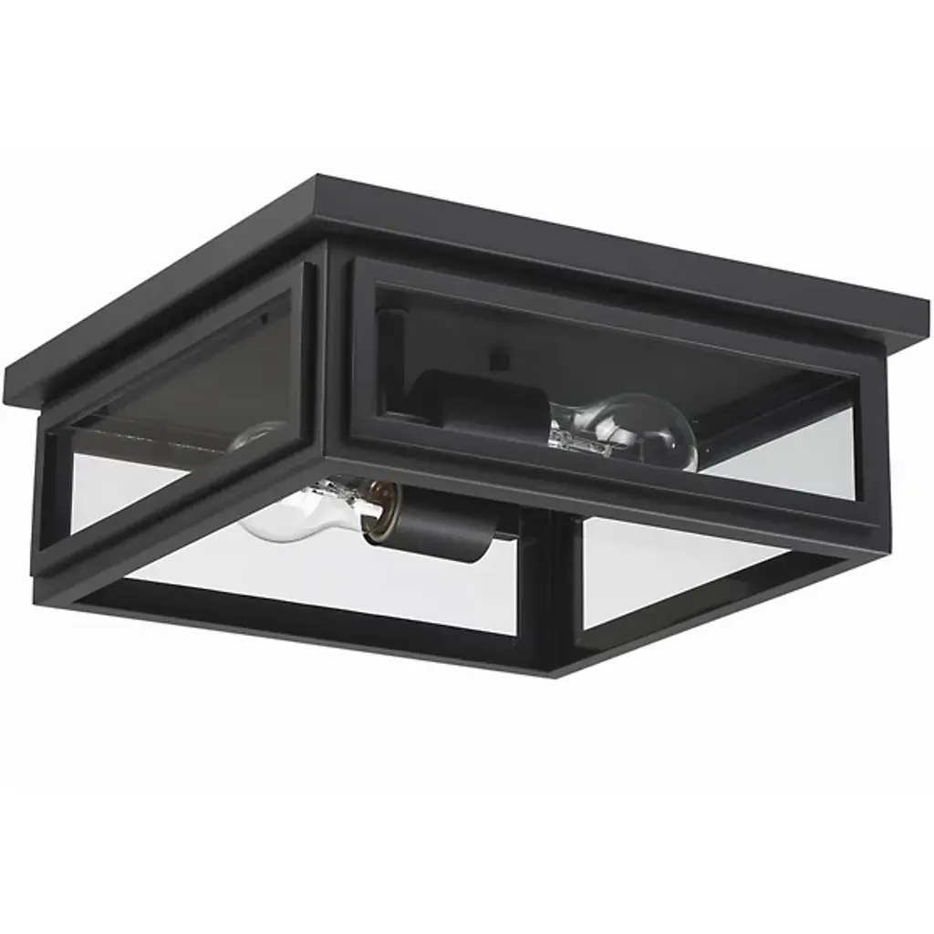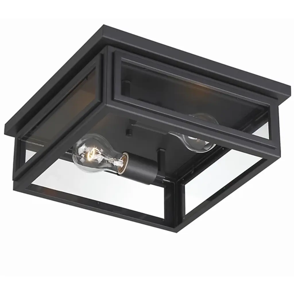 Introducing the Byron Outdoor Flushmount by Crystorama, an exceptional lighting fixture that effortlessly elevates any architectural setting with its modern appeal. With its clean lines and sharp angles, this flushmount embodies a contemporary style that seamlessly harmonizes with diverse design aesthetics. The tapered rectangle clear glass shade enables the diffusion of bright and inviting illumination, enhancing the visual impact of the home's exterior. Whether installed in an entryway, patio, or terrace, the sleek design of the Byron Outdoor Flushmount adds a touch of timeless allure to outdoor spaces.