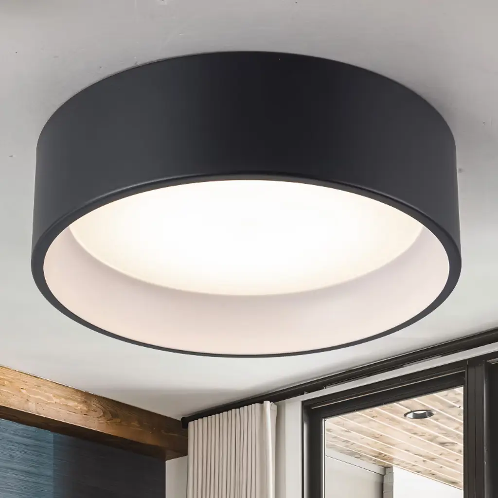C Cattleya 16in Black And White Finish Led Drum Flush Mount Ceiling Light(3000k/4000k/5000k)