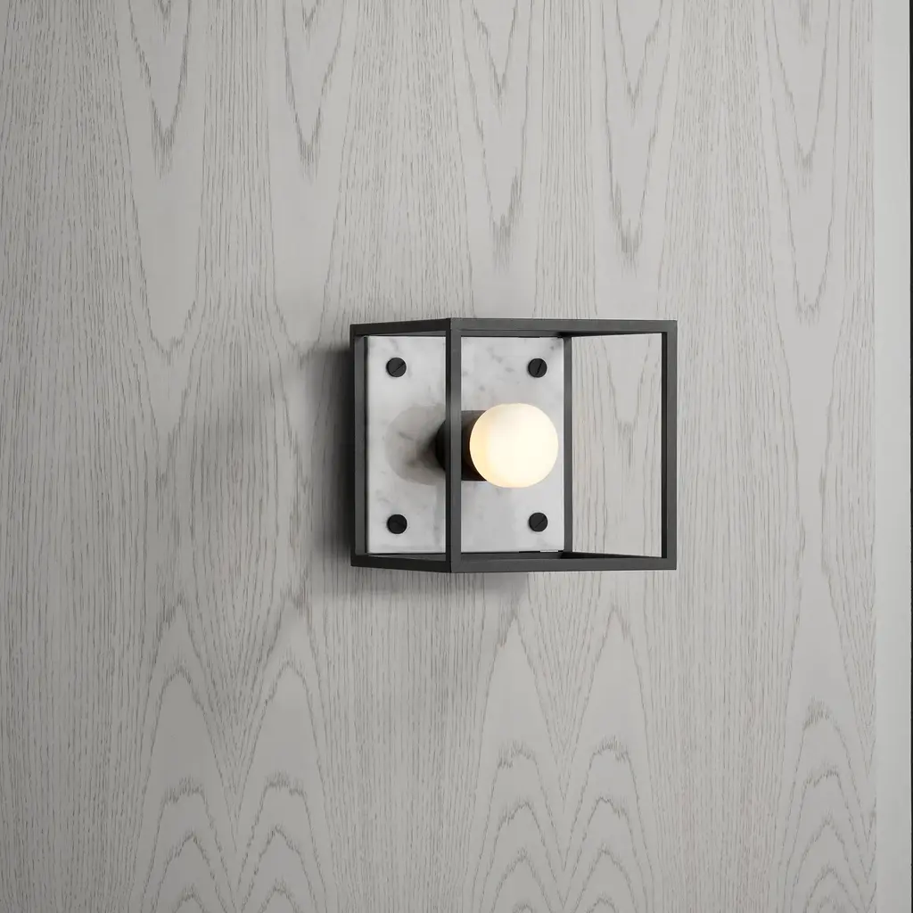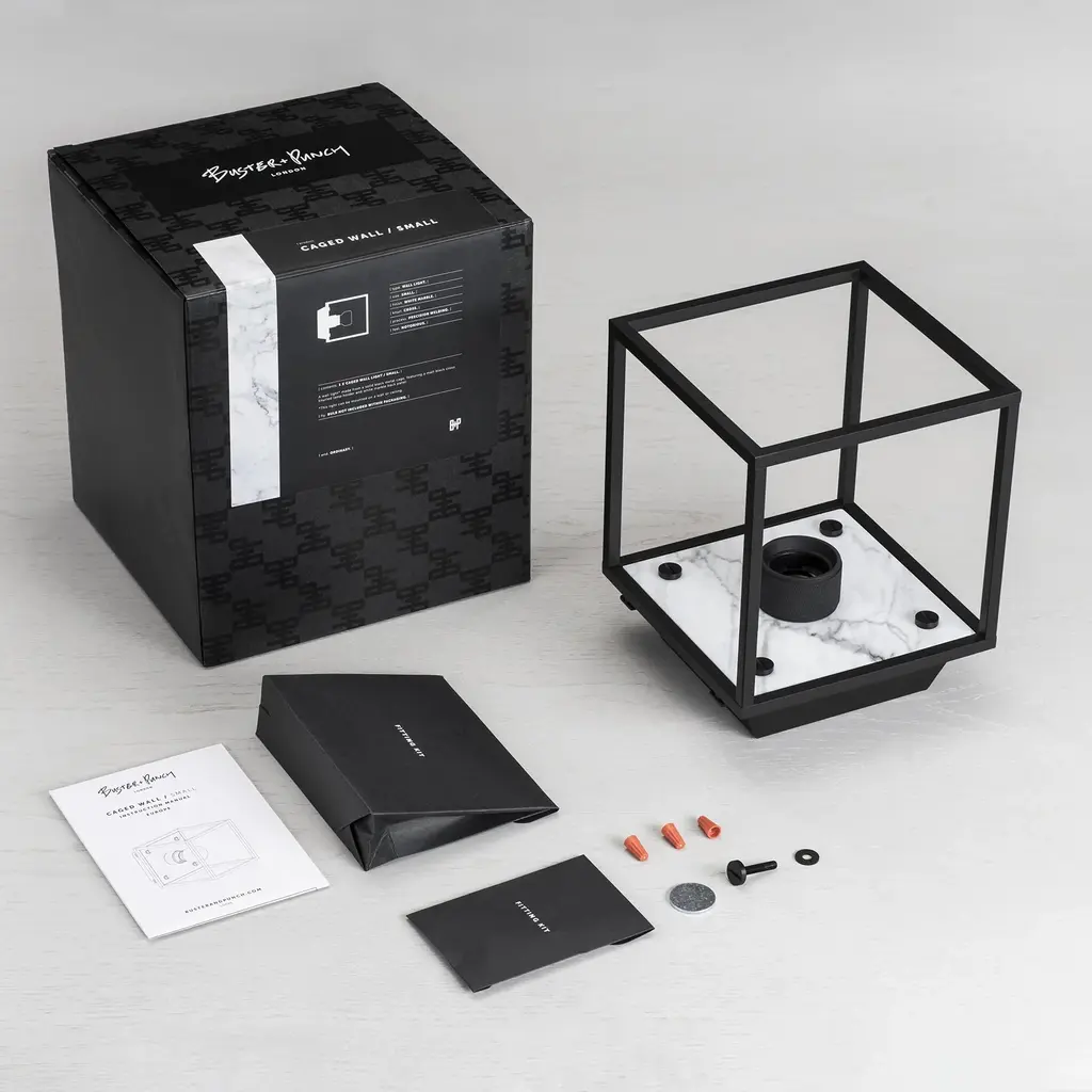 A raw and refined statement for your ceiling, the Caged Flush Mount from Buster + Punch is a study in material contrasts. This stunning light is defined by its metal cage, which creates a bold, graphic frame around the light source. The cage is complemented by a polished marble back panel, which adds a touch of unexpected luxury and reflects a soft, ambient glow. A fusion of industrial edge and refined detail, it’s a sophisticated and unconventional lighting solution for the modern interior. Highlights: