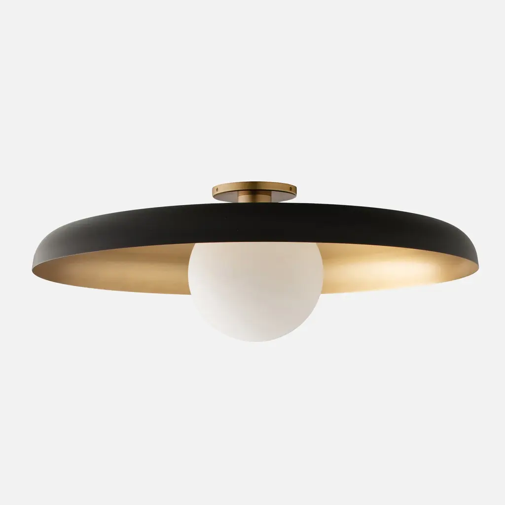 The Caldera 26” Flush Mount is utilitarian lighting at its most enduring (and statement-making). Designed by local Portland studio FOLK, it has a scaled-up and low-profile shade that directs light down, all while a hand-blown glass diffuser softly sends light outward. The natural brass detail is just the finishing touch.