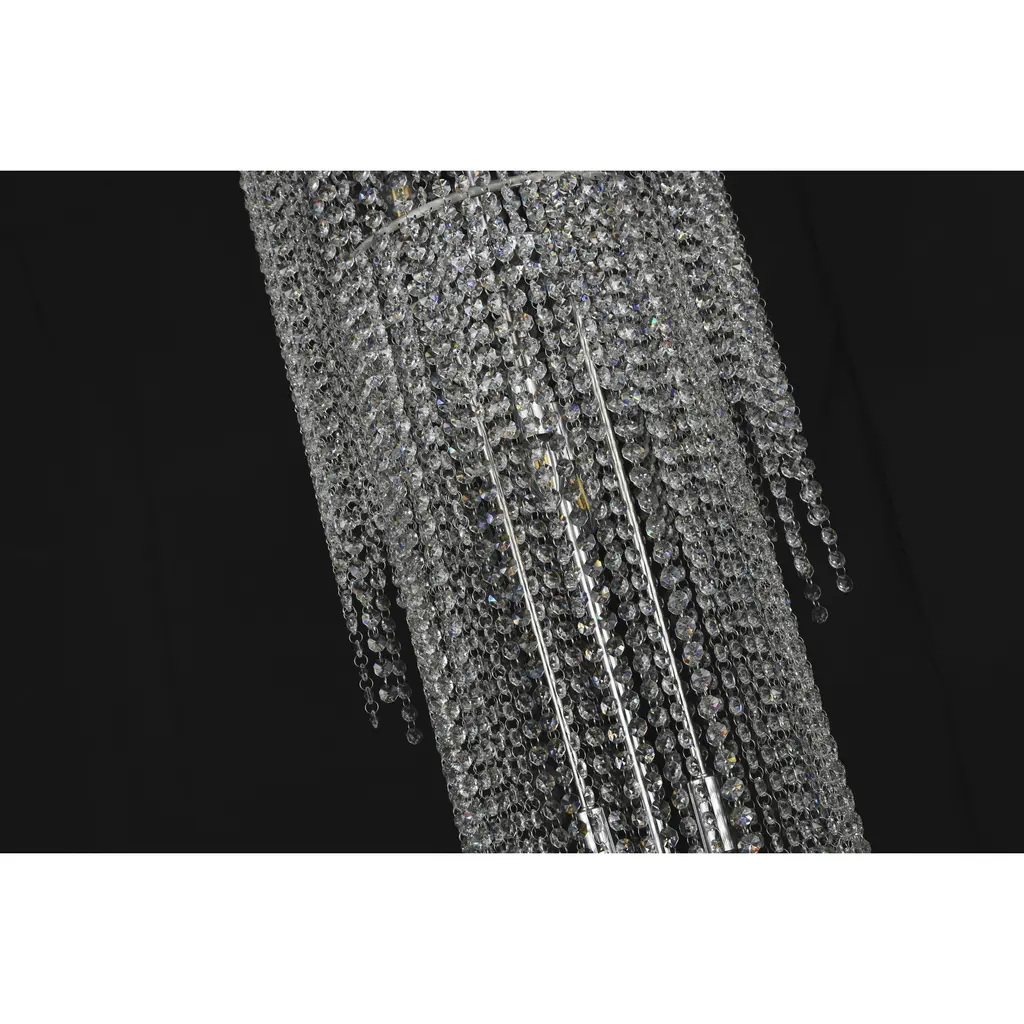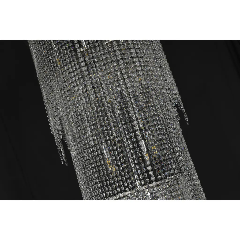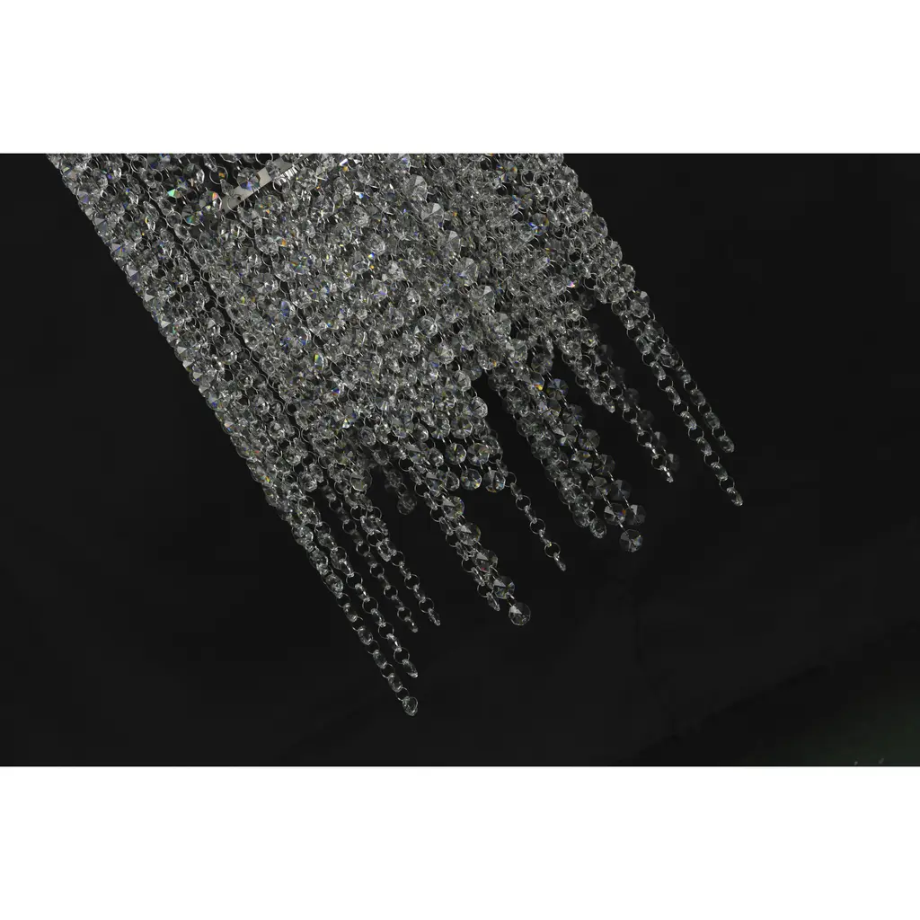 This flush mount is in a chrome finish. It comes with clear hanging crystals. The materials for this flush mount consists of stainless steel and crystal.