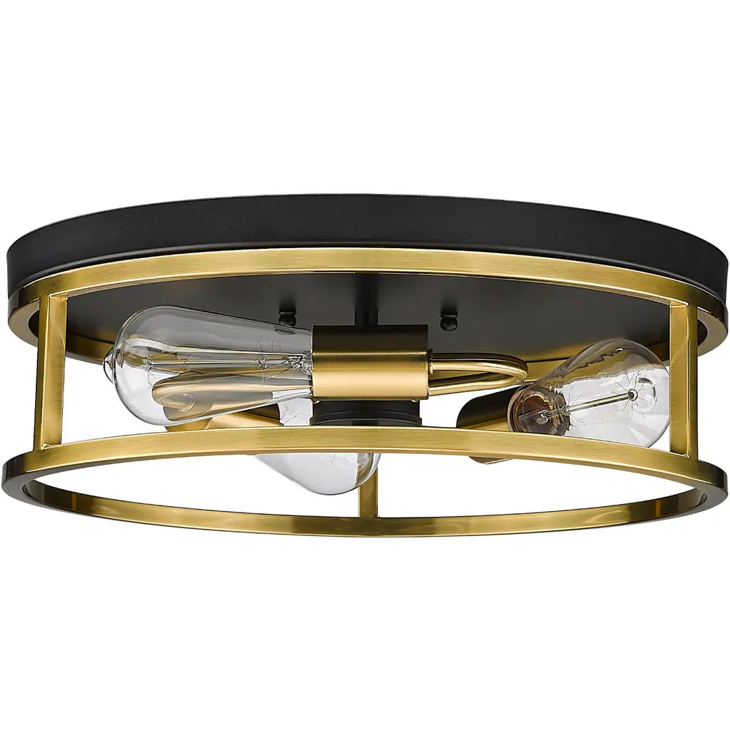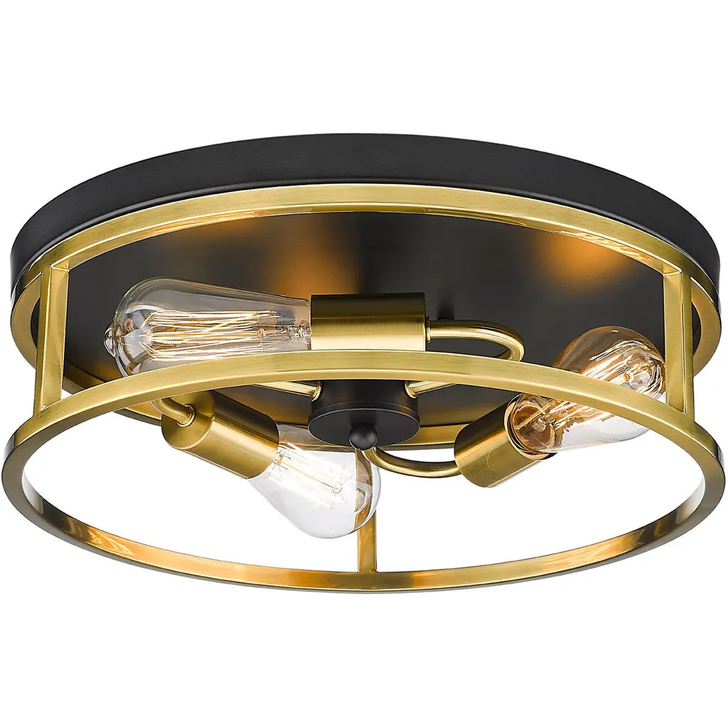 Canada 3 Light 16 Inch Black & Gold Flush Mount Ceiling Light
