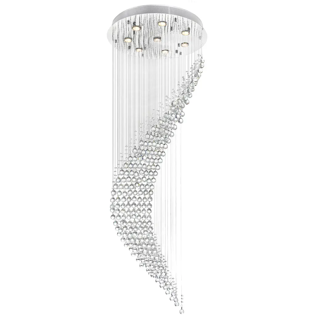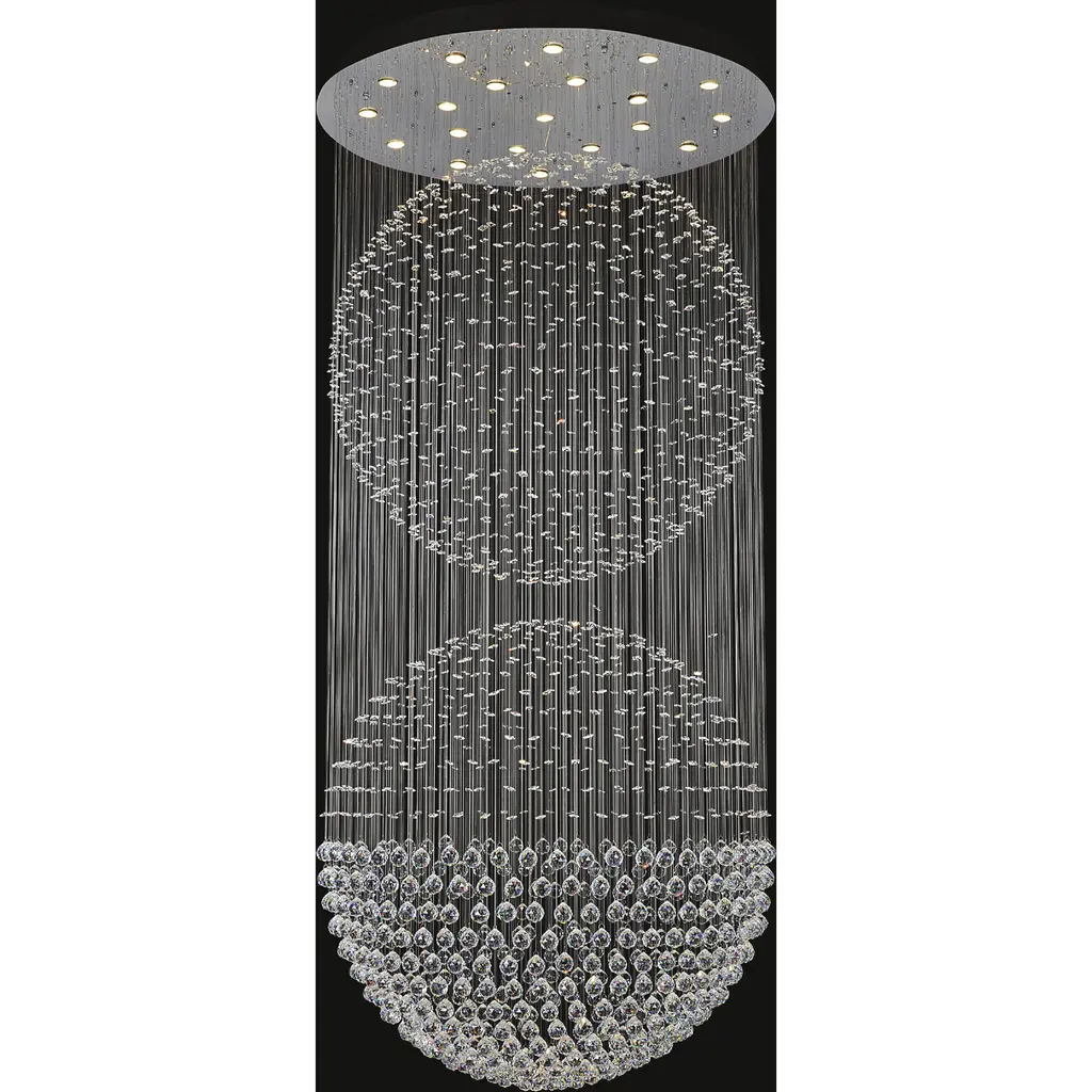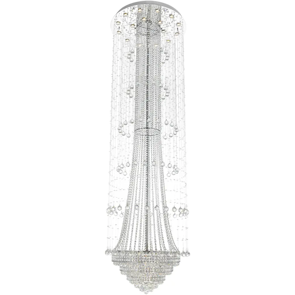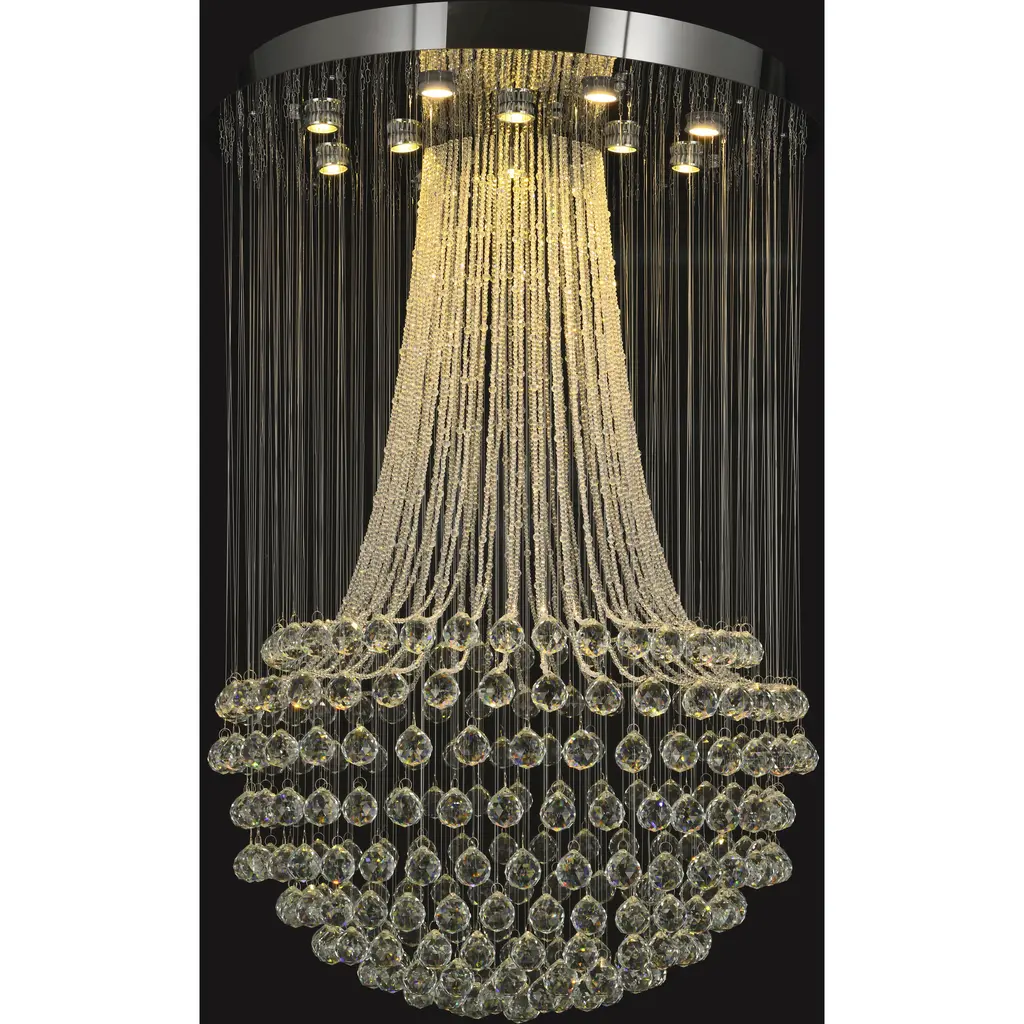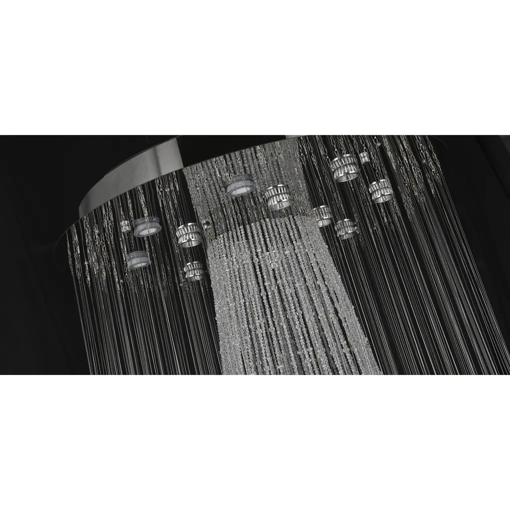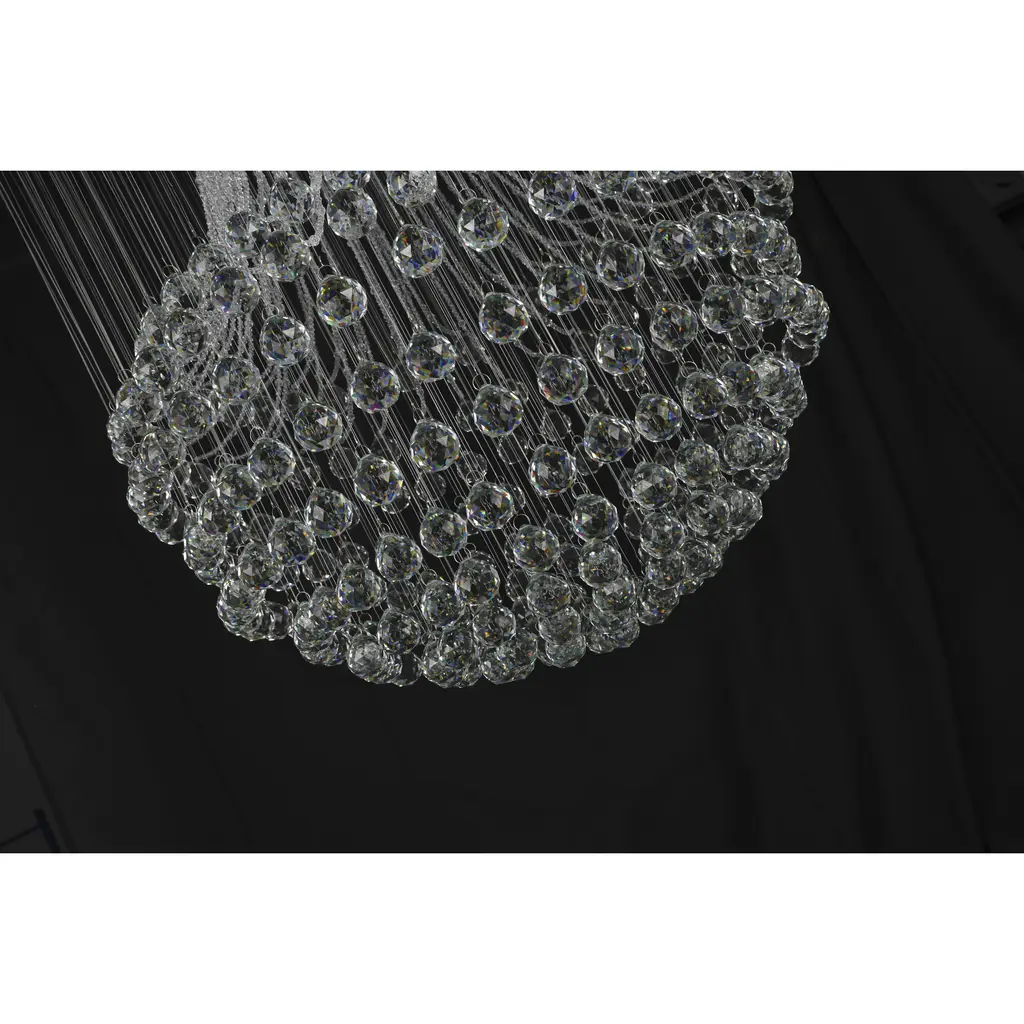 This flush mount is in a chrome finish. It comes with clear hanging crystals and beads. The materials for this flush mount consists of stainless steel and crystal.