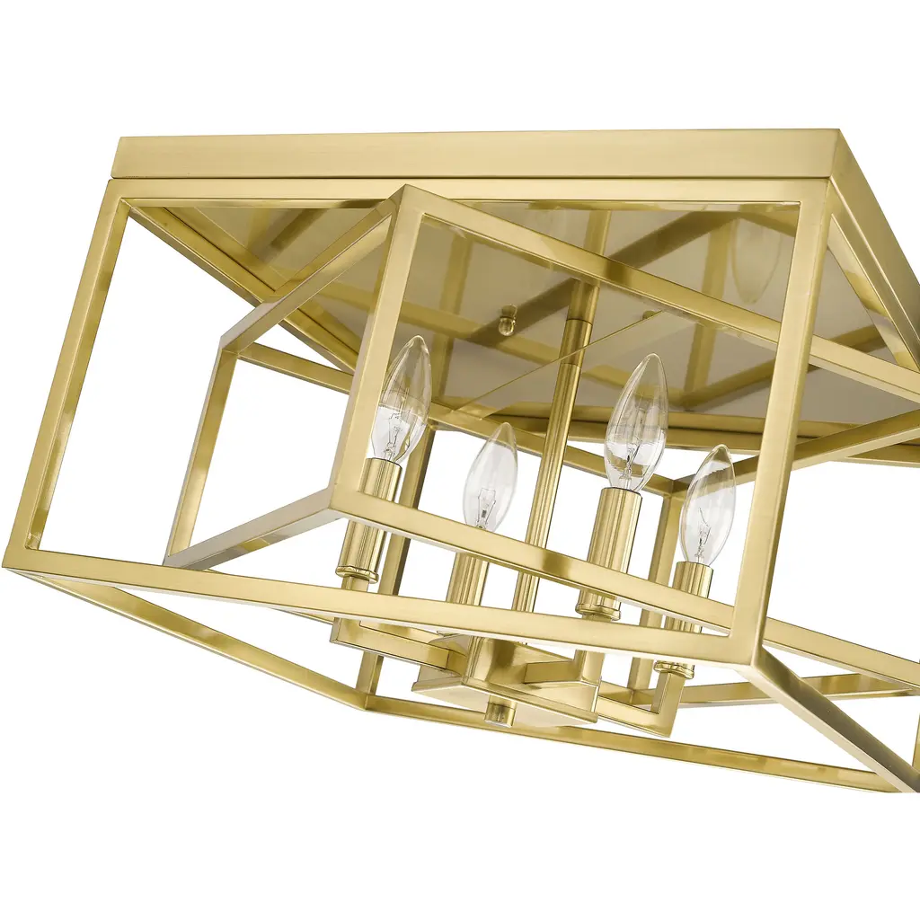 This flush mount is a sleek and transitional lighting fixture that adds a touch of sophistication to any room. The gold finish gives the fixture a clean and minimalist look, while the boxed design provides a sense of depth and dimension. The flush mount design makes it easy to install and provides a seamless integration with the ceiling. The fixture measures 16 inches in length, 16 inches in width, and 7 inches in height, making it a versatile option for a variety of spaces. The 4xE12 base accommodates 60W bulbs (Bulbs Not Included), providing ample light output. With its modern design and clean lines, this flush mount is an excellent choice for bedroom, living room, dinning room, hallway, or entryway.