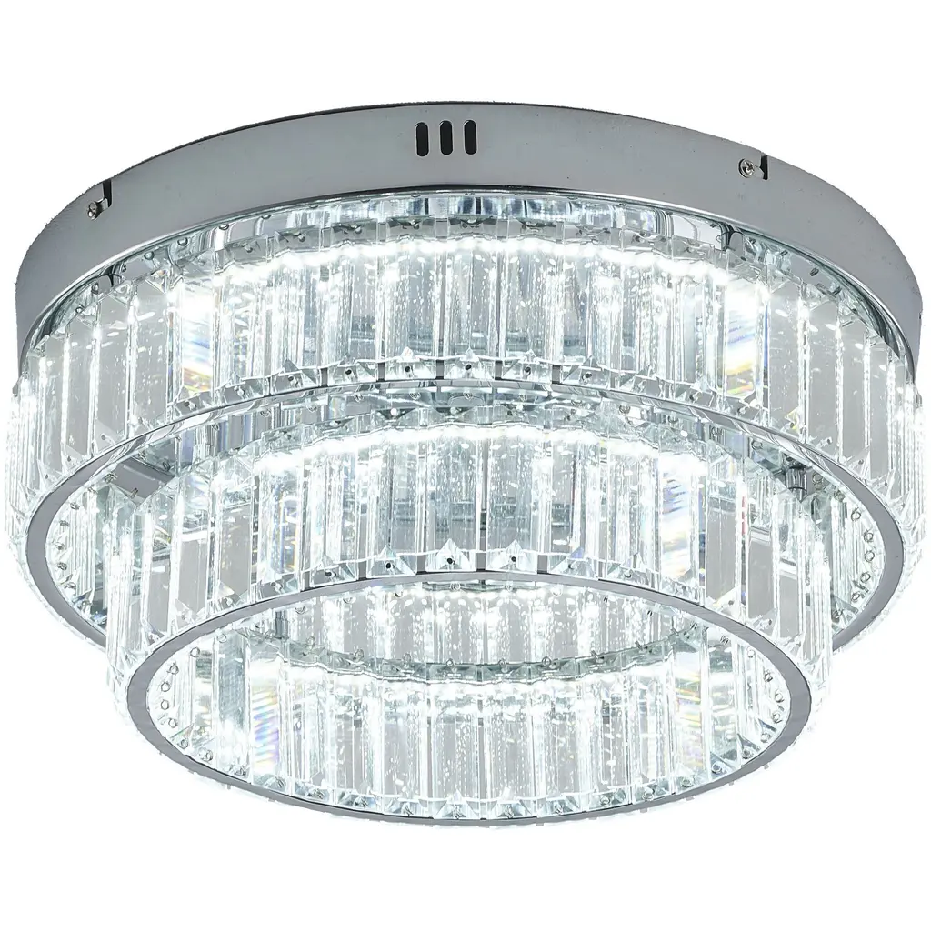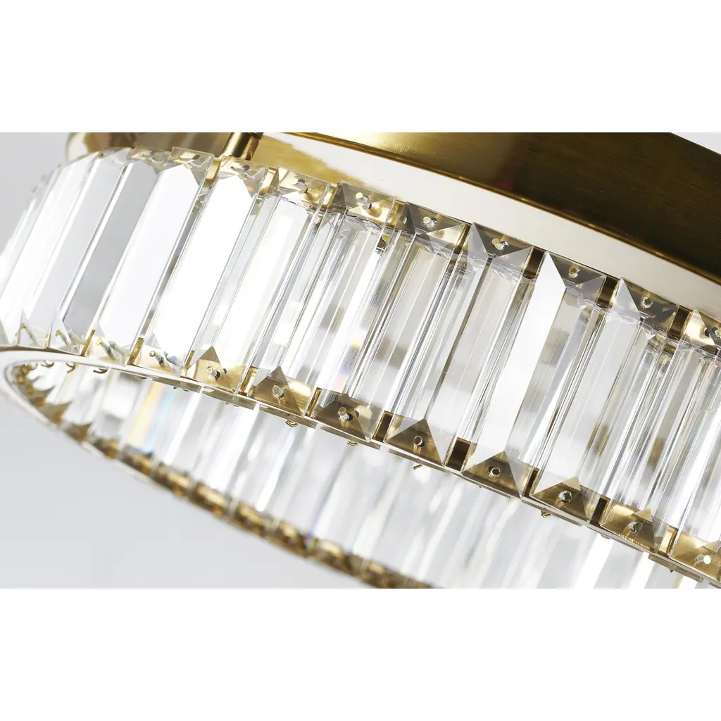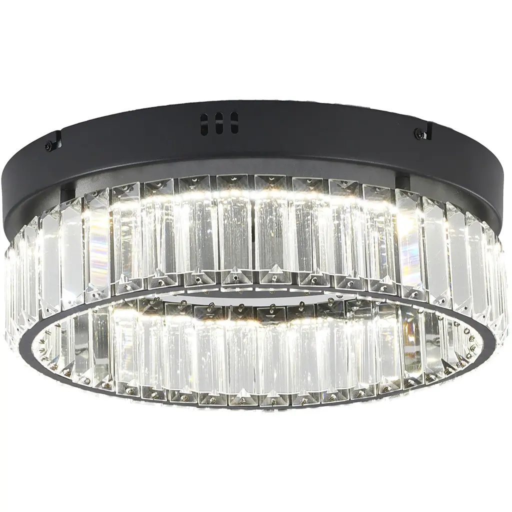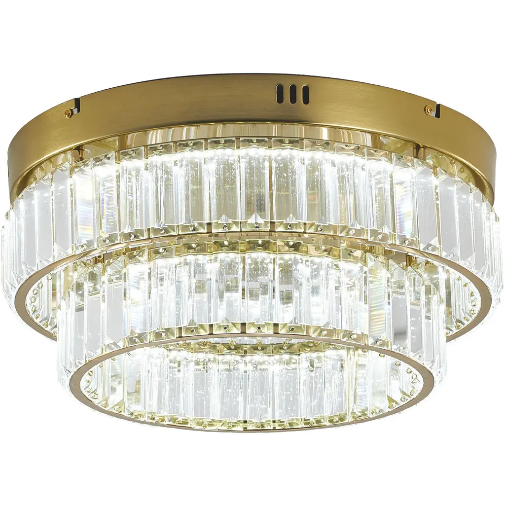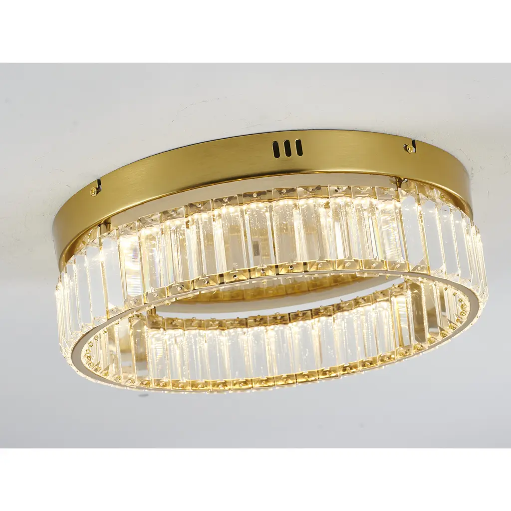 This transitional LED flush mount is stunning with a brass steel frame decked with strands of faceted clear crystal shades, and the crystals further highlight the uniqueness of this chandelier. When you hang this modern LED chandelier in your home, you will easily be surprised by the magnificent light reflected by the crystal accents. This fixture showcase opulence and elegance and is the perfect modern accent to any space. If you are also looking for a light source for your living room, hallway, bedroom, kitchen, or dinning room, this LED flush mount can easily fit into your modern home decor.