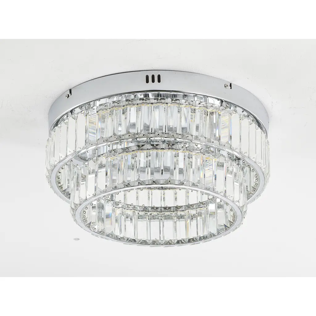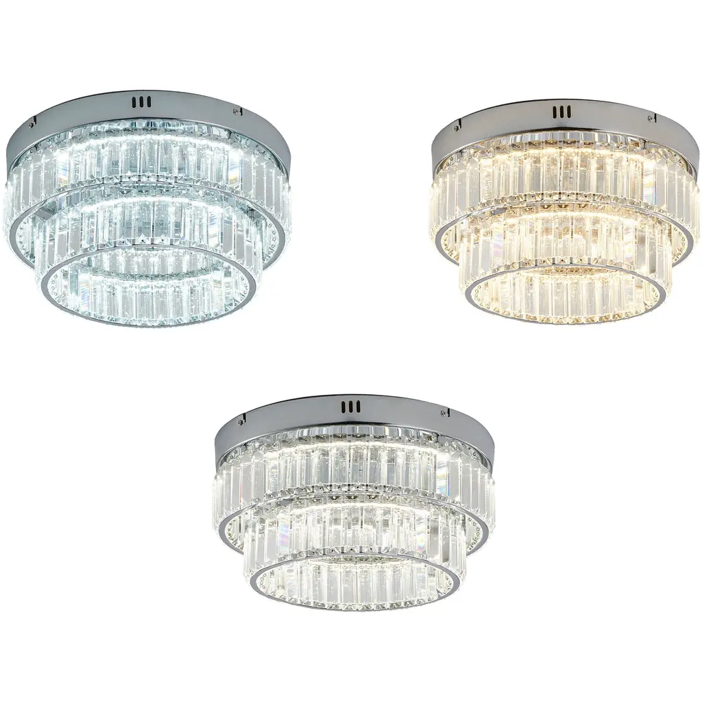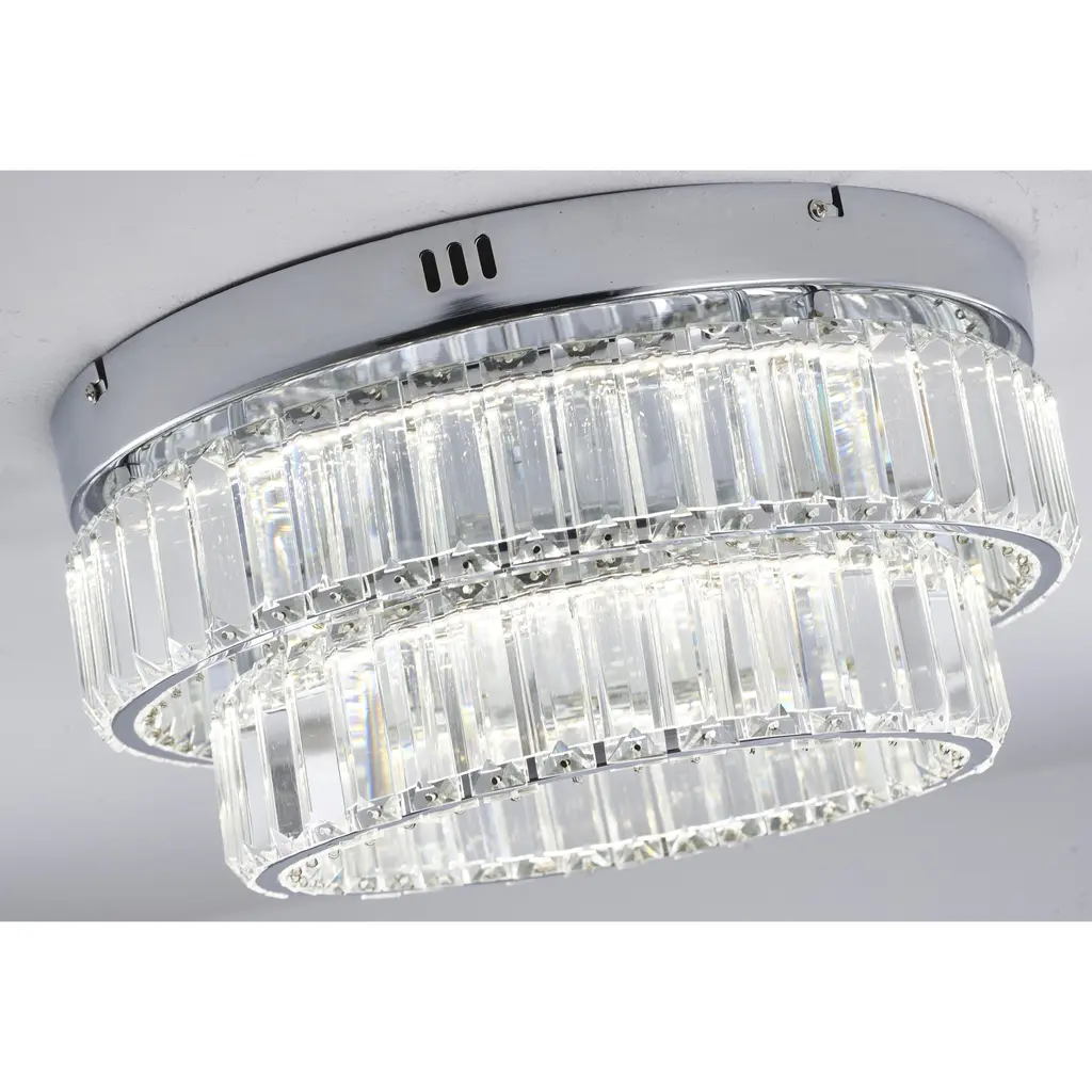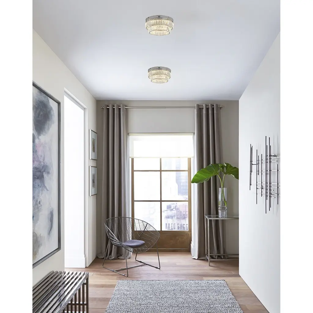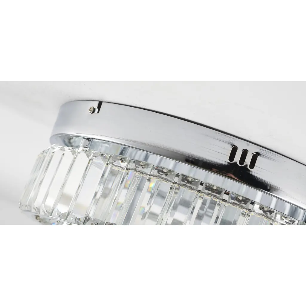 This transitional LED flush mount is stunning with a chrome steel frame decked with strands of faceted clear crystal shades, and the crystals further highlight the uniqueness of this chandelier. When you hang this modern LED chandelier in your home, you will easily be surprised by the magnificent light reflected by the crystal accents. This fixture showcase opulence and elegance and is the perfect modern accent to any space. If you are also looking for a light source for your living room, hallway, bedroom, kitchen, or dinning room, this LED flush mount can easily fit into your modern home decor.