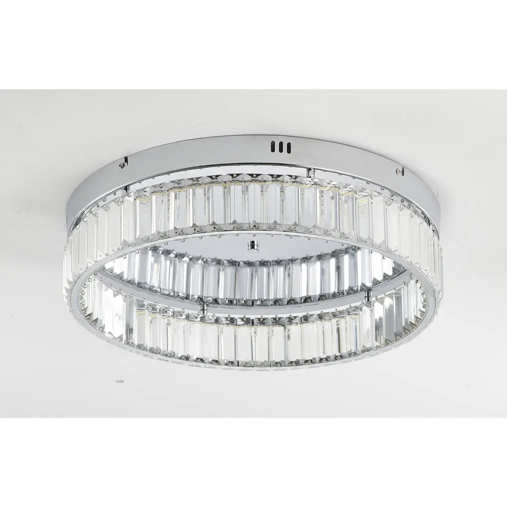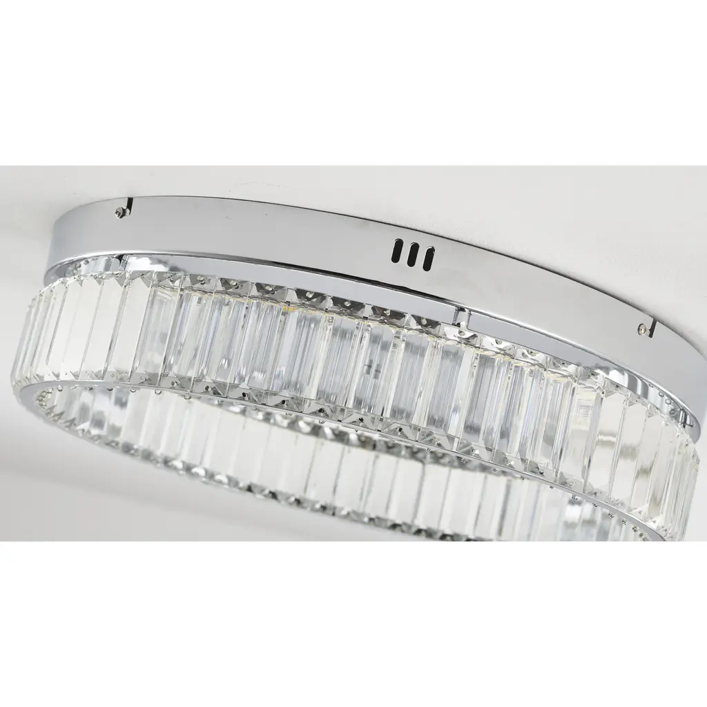 This transitional LED flush mount is stunning with a chrome steel frame decked with strands of faceted clear crystal shades, and the crystals further highlight the uniqueness of this chandelier. When you hang this modern LED chandelier in your home, you will easily be surprised by the magnificent light reflected by the crystal accents. This fixture showcase opulence and elegance and is the perfect modern accent to any space. If you are also looking for a light source for your living room, hallway, bedroom, kitchen, or dinning room, this LED flush mount can easily fit into your modern home decor.