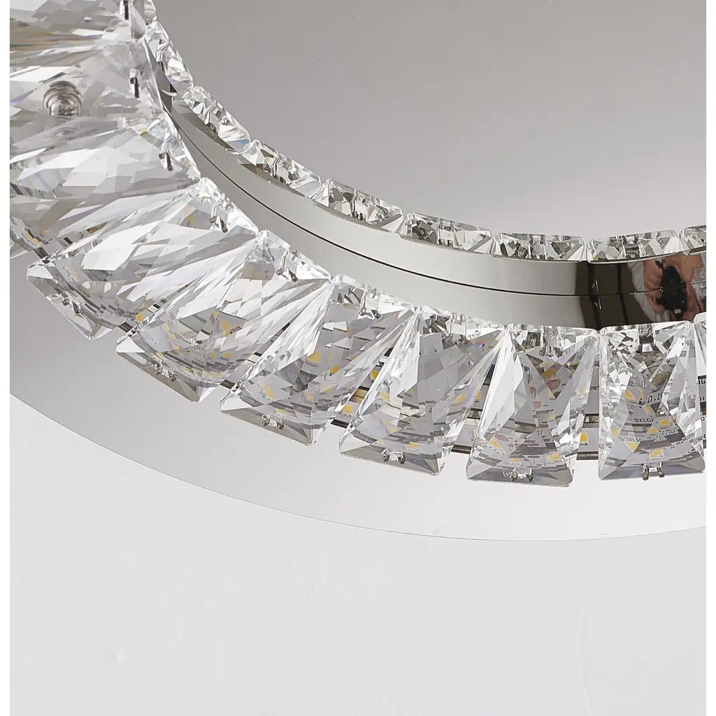This stunning clear crystal, stainless steel flush mount is a sleek and transitional lighting fixture that adds a touch of elegance to any room. With a diameter of 22.8 inches and a height of 1.5 inches, it's a compact and unobtrusive design that blends seamlessly into any ceiling. The clear crystal shade adds a touch of luxury and sophistication, while the stainless steel trim provides a durable and long-lasting finish. The fixture is equipped with an 24W LED bulb that produces a bright and energizing 4000K color temperature, making it perfect for task lighting or general illumination. This LED flush mount is perfect for kitchen, bedroom, living room, entryway, or hallways where a touch of modern style is desired.