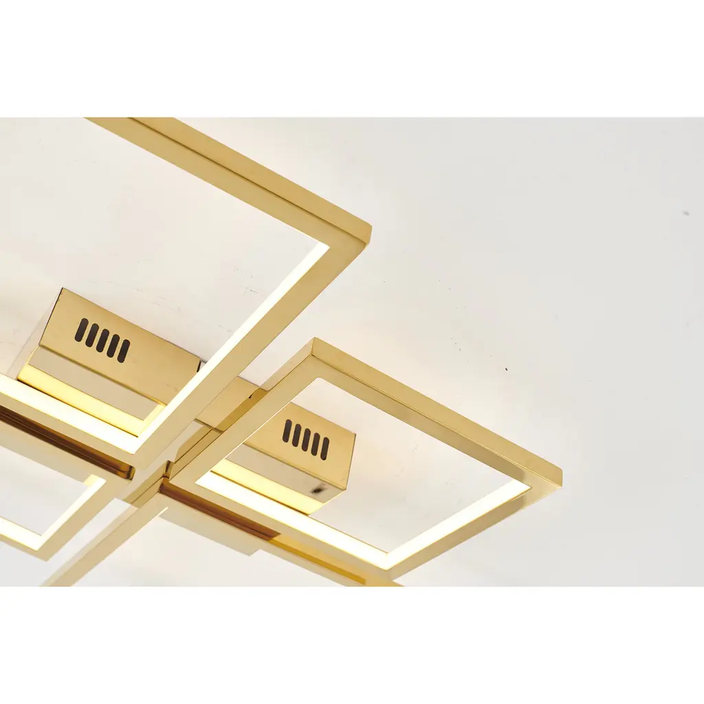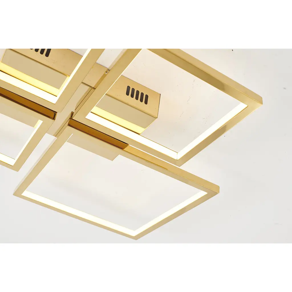 This LED flush mount is a sleek and transitional lighting fixture that adds a touch of sophistication to any room. The gold finish provides a bright and shiny appearance, while the square stainless steel frame adds a touch of industrial chic. The flush mount design allows the fixture to be installed flush with the ceiling, creating a clean and minimalist look. The fixture is designed to accommodate 40W of LED lighting, which provides ample illumination for a small to medium-sized space. The dimensions of the fixture are 24.4 inches long, 24.4 inches wide, and 2.5 inches high, making it a great option for installing in a living room, dinning room, bedroom, or entryway.