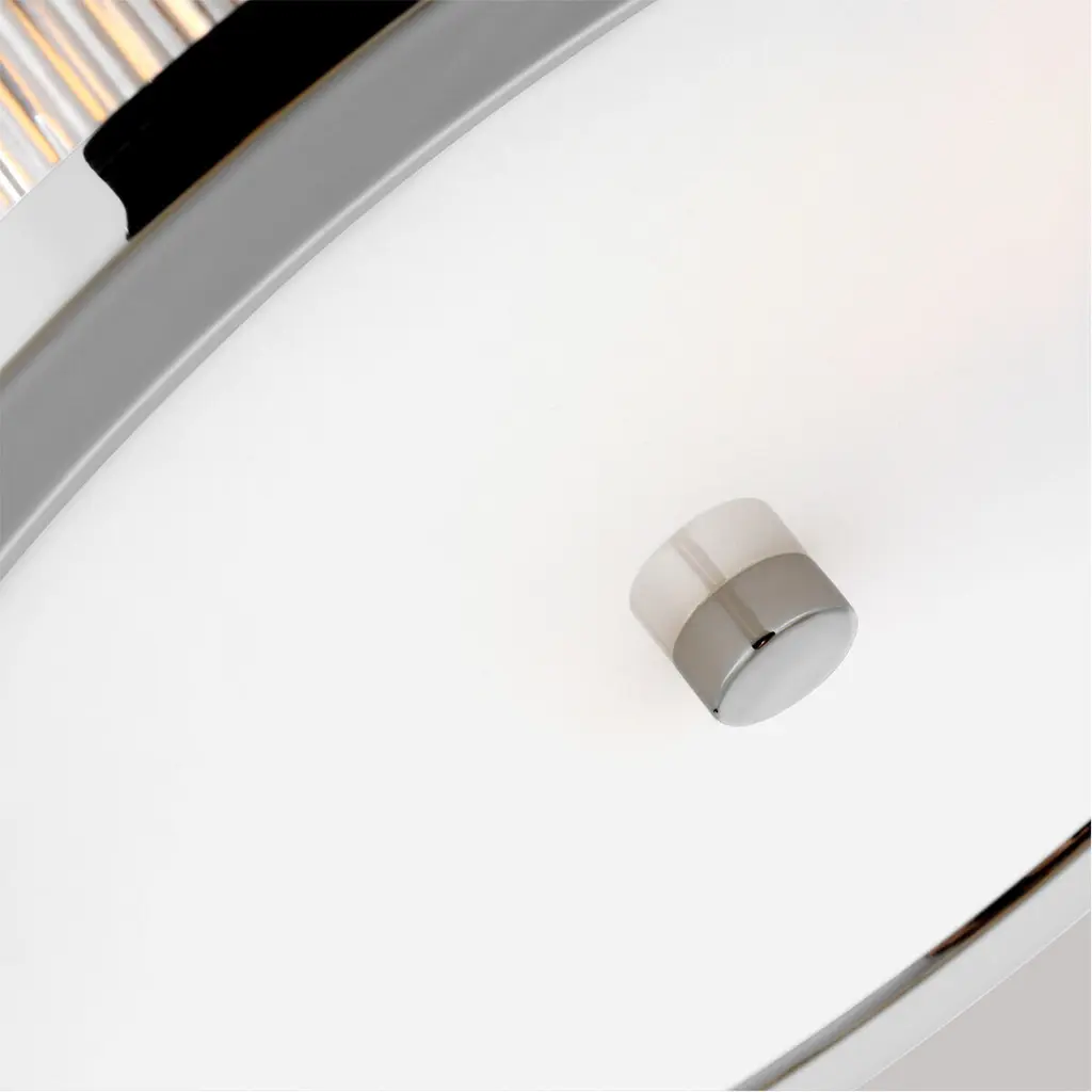 In the Geneva two light flush mount fixture, a fluted shade forms an elegant, dynamic silhouette that's balanced by a strong frame of Burnished Brass or Polished Nickel.