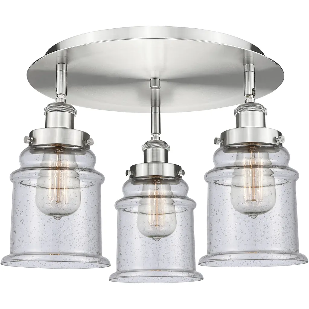 Canton 3 Light 17.75 Inch Polished Nickel Flush Mount Ceiling Light In Seedy