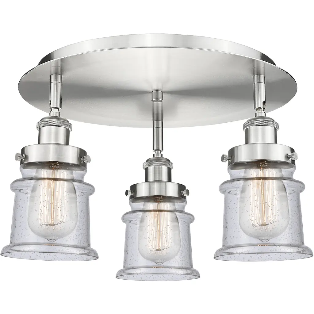 Canton - 3 Light 17" Flush Mount - Antique Brass Finish - Seedy Glass Shade