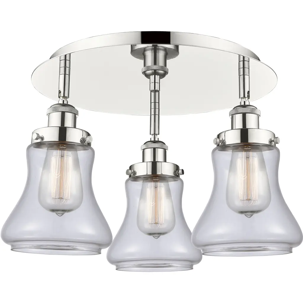 Canton 3 Light 17 Inch Polished Nickel Flush Mount Ceiling Light In Seedy