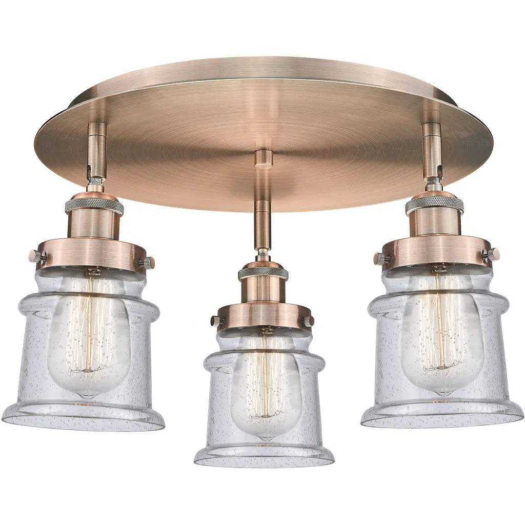 Canton - 3 Light 17" Flush Mount - Polished Nickel Finish - Seedy Glass Shade