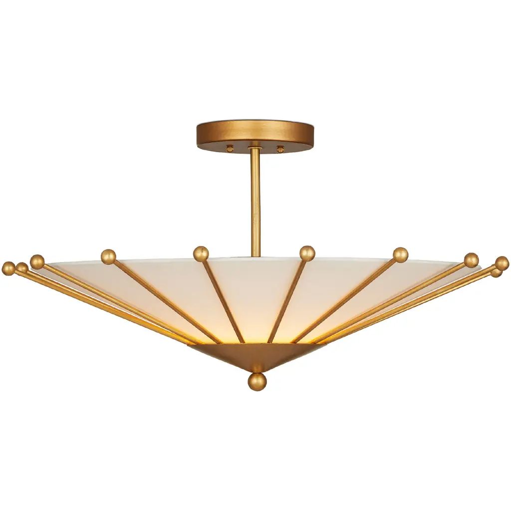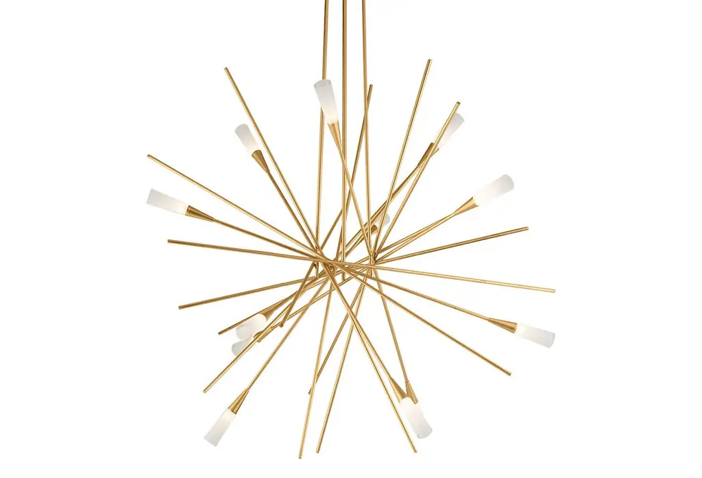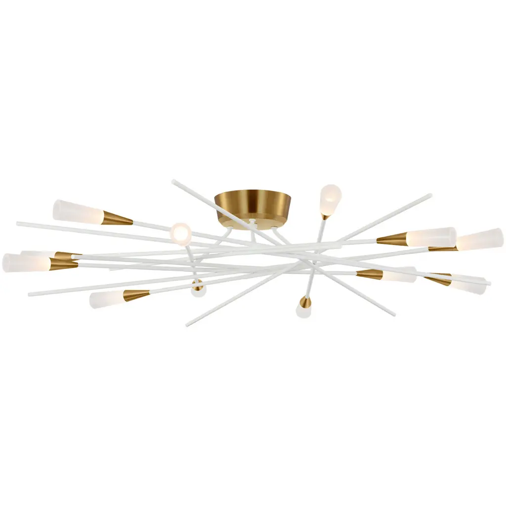 The Capieso LED Flushmount from Minka-Lavery brings a striking contemporary touch to any space. Designed with a dynamic array of slender steel rods that radiate from a central disk, this fixture creates a bold, modern silhouette. Decorative circles separate the rods at the top, adding layers of visual interest and sophistication. A frosted glass shade at the center softly diffuses light, casting a warm and inviting glow. Perfect for modern interiors, this flushmount elevates any room with style and elegance.