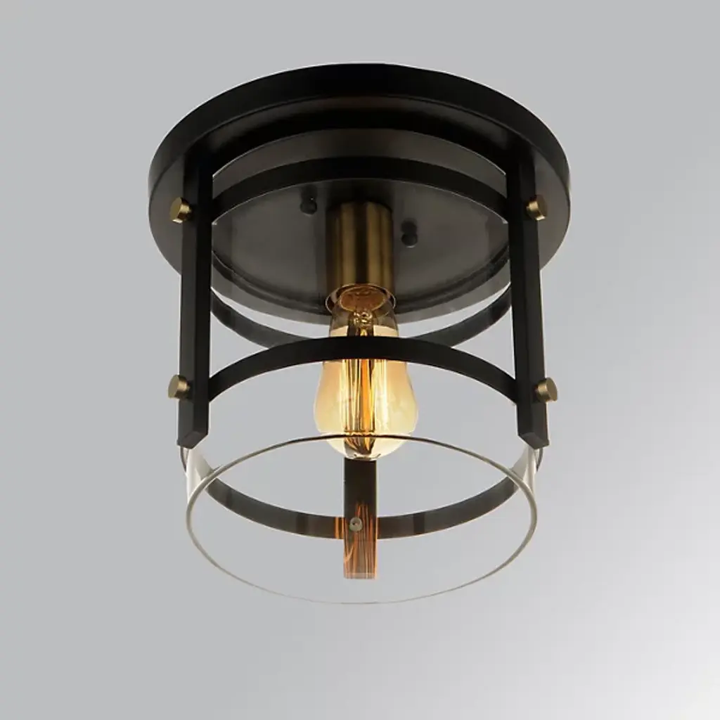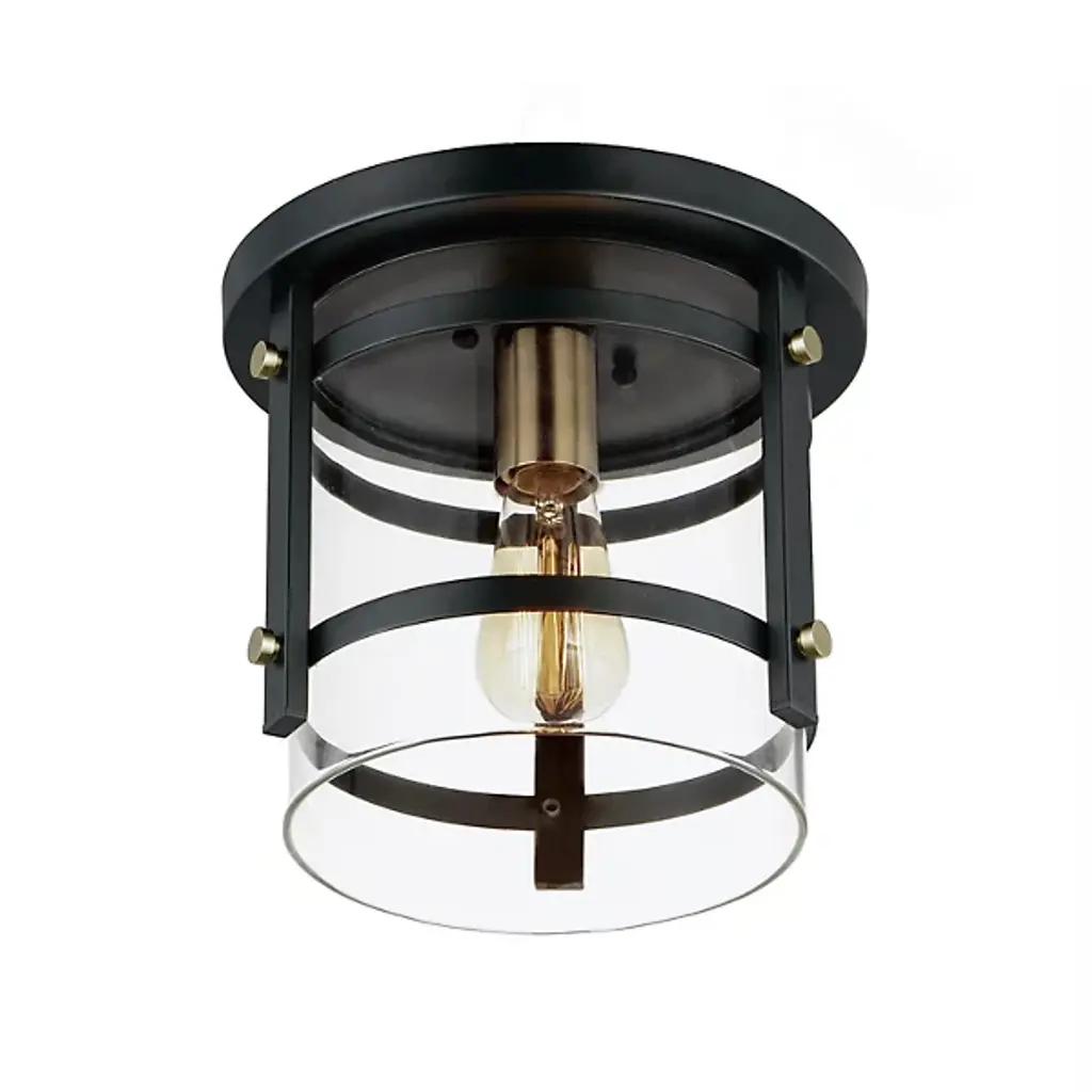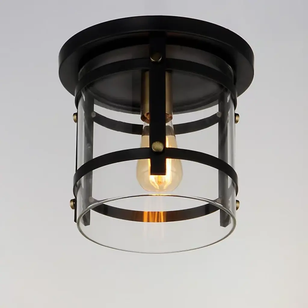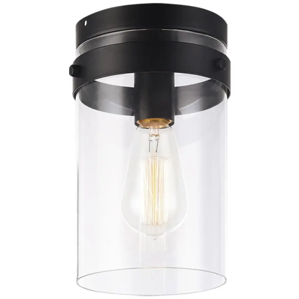 Add a touch of transitional lighting to your home décor with the Capitol Flushmount from Maxim Lighting. Made of smooth metal throughout, this piece mounts directly to the ceiling with a clean, rounded base. A clear, cylindrical glass diffuser gently rests within the body, shielding a single, downward-facing bulb. The light from the crisp bulb enters the space with ease, spreading a warm and welcoming dose of ambiance to your home.