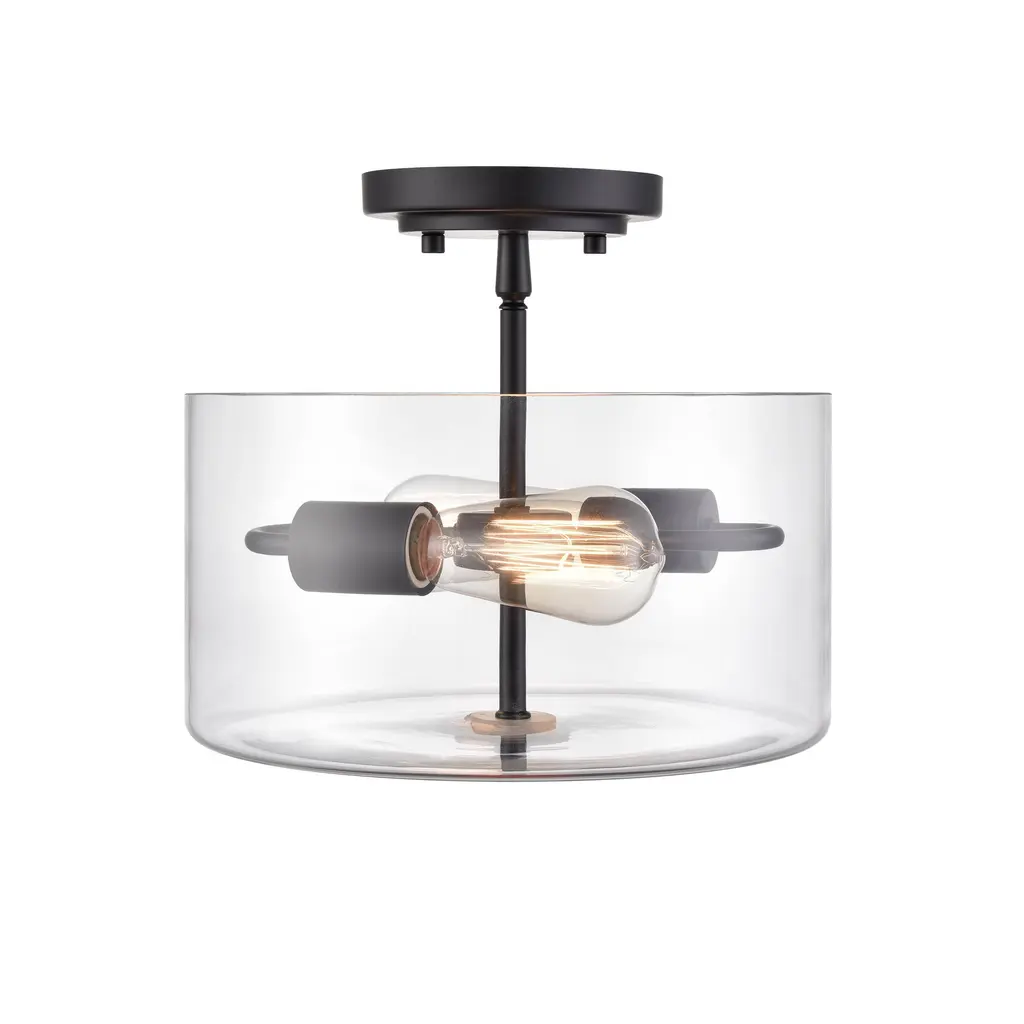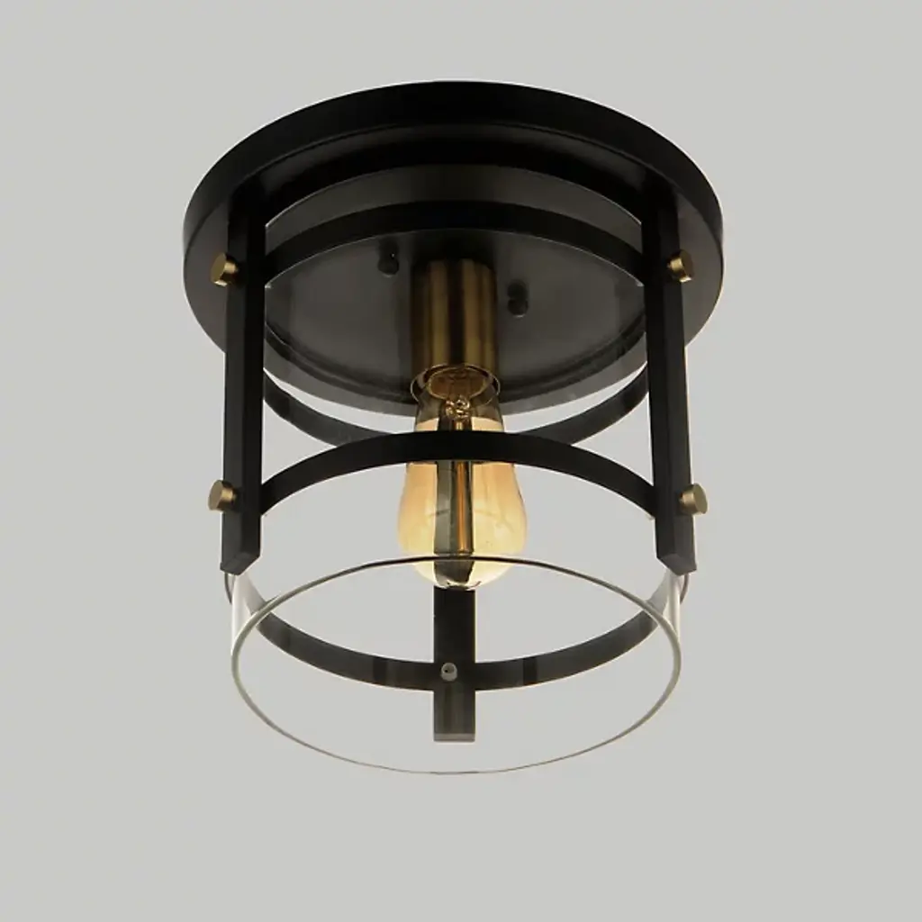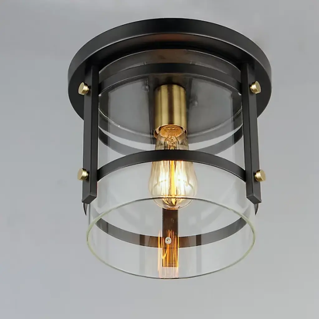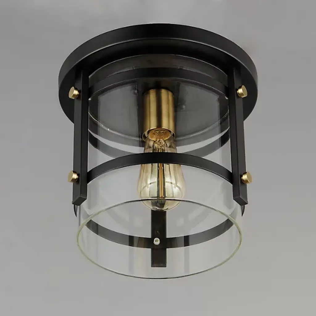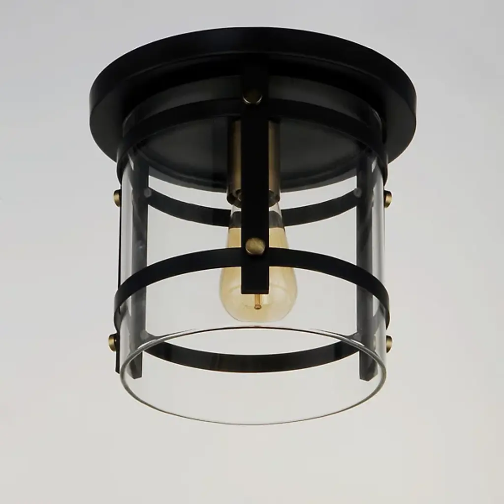 Add a touch of transitional lighting to your home décor with the Capitol Flushmount from Maxim Lighting. Made of smooth metal throughout, this piece mounts directly to the ceiling with a clean, rounded base. A clear, cylindrical glass diffuser gently rests within the body, shielding a single, downward-facing bulb. The light from the crisp bulb enters the space with ease, spreading a warm and welcoming dose of ambiance to your home.