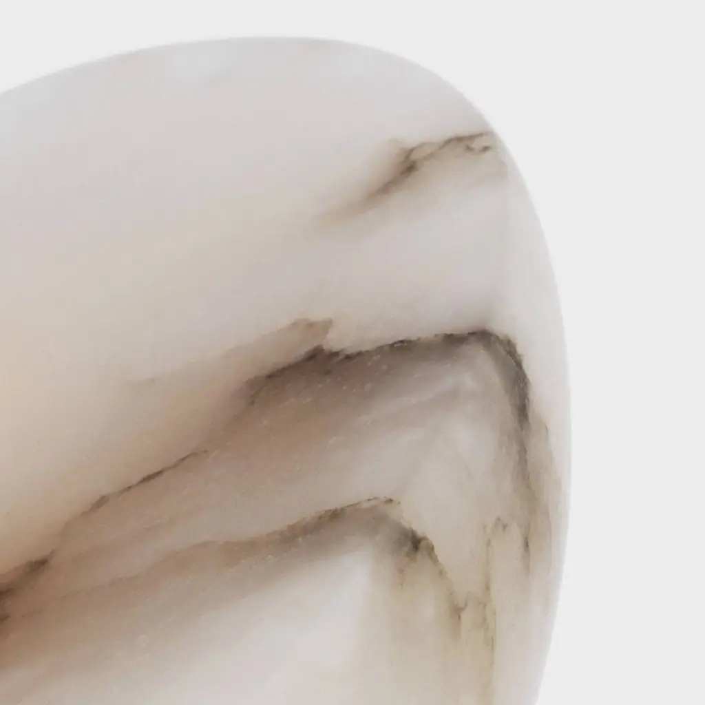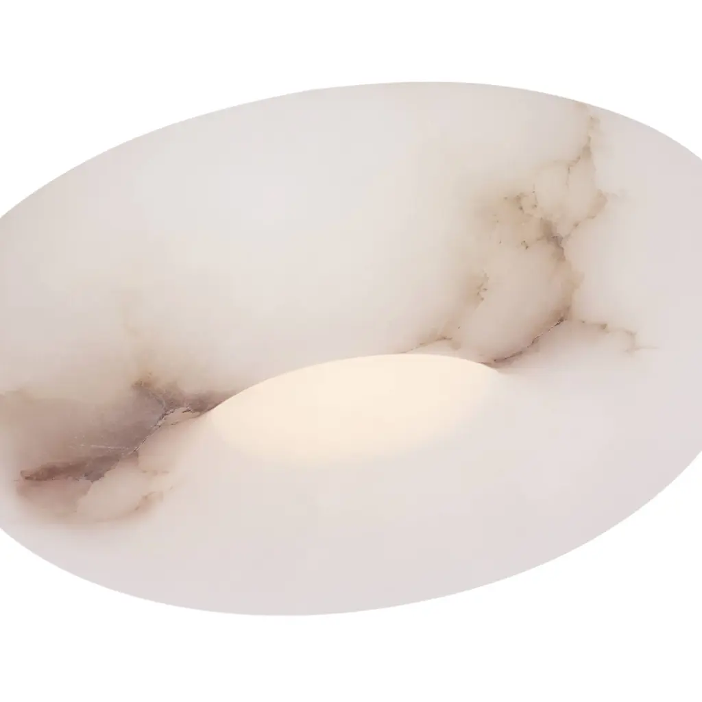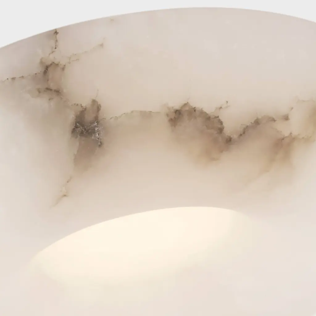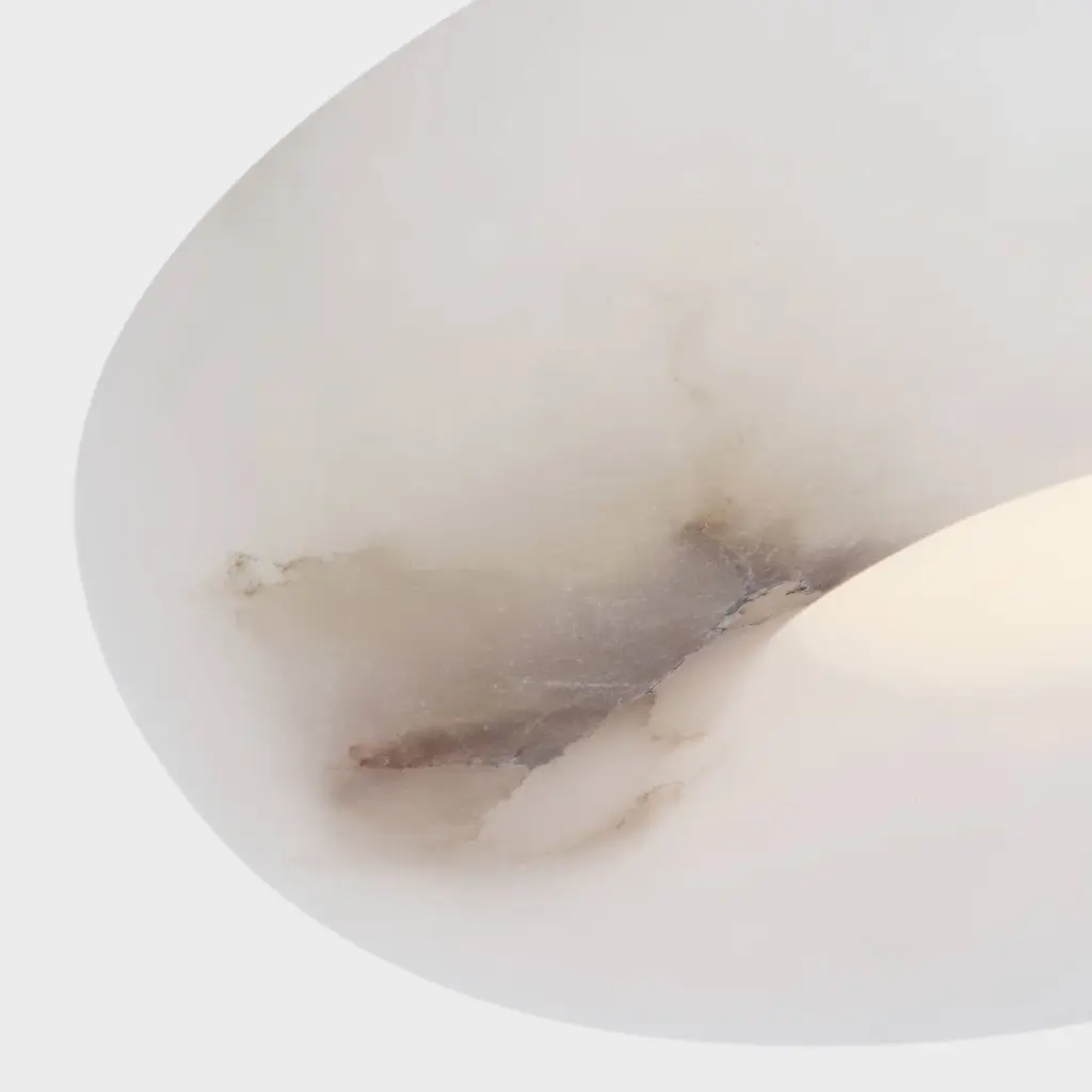 Inspired by an affinity for natural materials, the Cappello 12" Flush Mount highlights alabaster's inherent beauty. Its integrated central light source creates a captivating gradient, casting a warm, inviting ambiance as the light disperses through the concave form. Thoughtfully minimal detailing ensures the stone remains the focal point, transforming the lamp into a self-contained work of art.