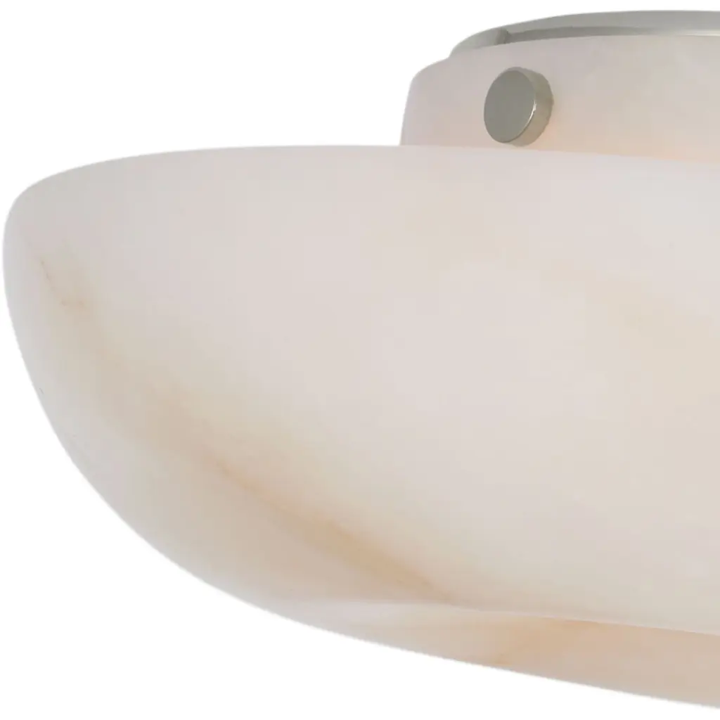 The Cappello Flush Mount is a sophisticated lighting solution that seamlessly blends elegance with functionality. Its design features a harmonious combination of alabaster and metal finishes, offering a timeless appeal that complements any interior decor. Available in various sizes, this flush mount provides a warm and inviting glow, enhancing the ambiance of any room. The Cappello's sleek silhouette and refined materials make it a versatile choice for both modern and traditional spaces, ensuring it remains a focal point in your home for years to come.