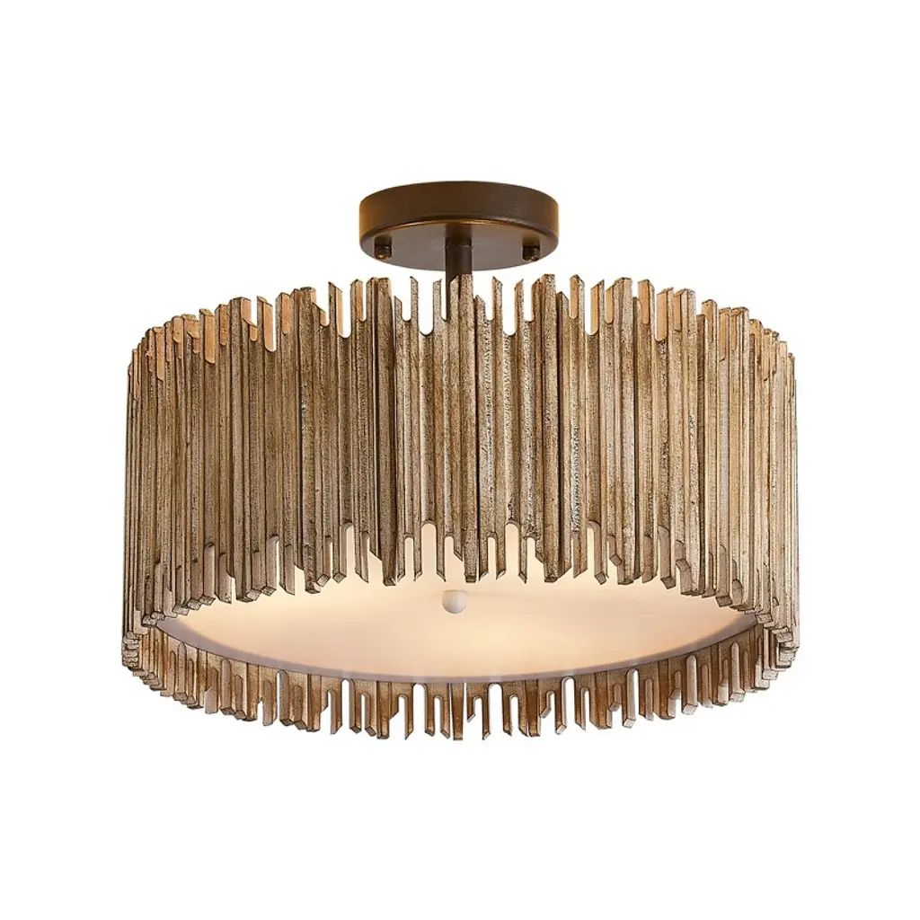 The Caravel LED Flushmount from Currey & Company brings the lively style of vintage pieces to modern spaces. With a classic drum-shaped design, this fixture extends directly from the ceiling via a composite frame adorned with slender vertical ridges that bring depth and texture to its simple, curved silhouette. A frosted glass diffuser encloses the fixture’s lamping, softening its glow and allowing its light to evenly disperse throughout the room.