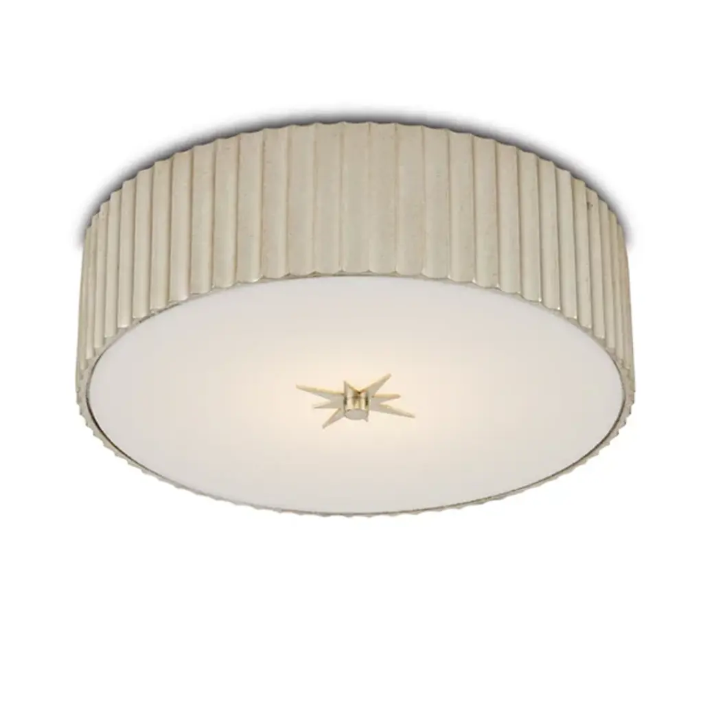 The Caravel LED Flushmount from Currey & Company brings the lively style of vintage pieces to modern spaces. With a classic drum-shaped design, this fixture extends directly from the ceiling via a composite frame adorned with slender vertical ridges that bring depth and texture to its simple, curved silhouette. A frosted glass diffuser encloses the fixture’s lamping, softening its glow and allowing its light to evenly disperse throughout the room.