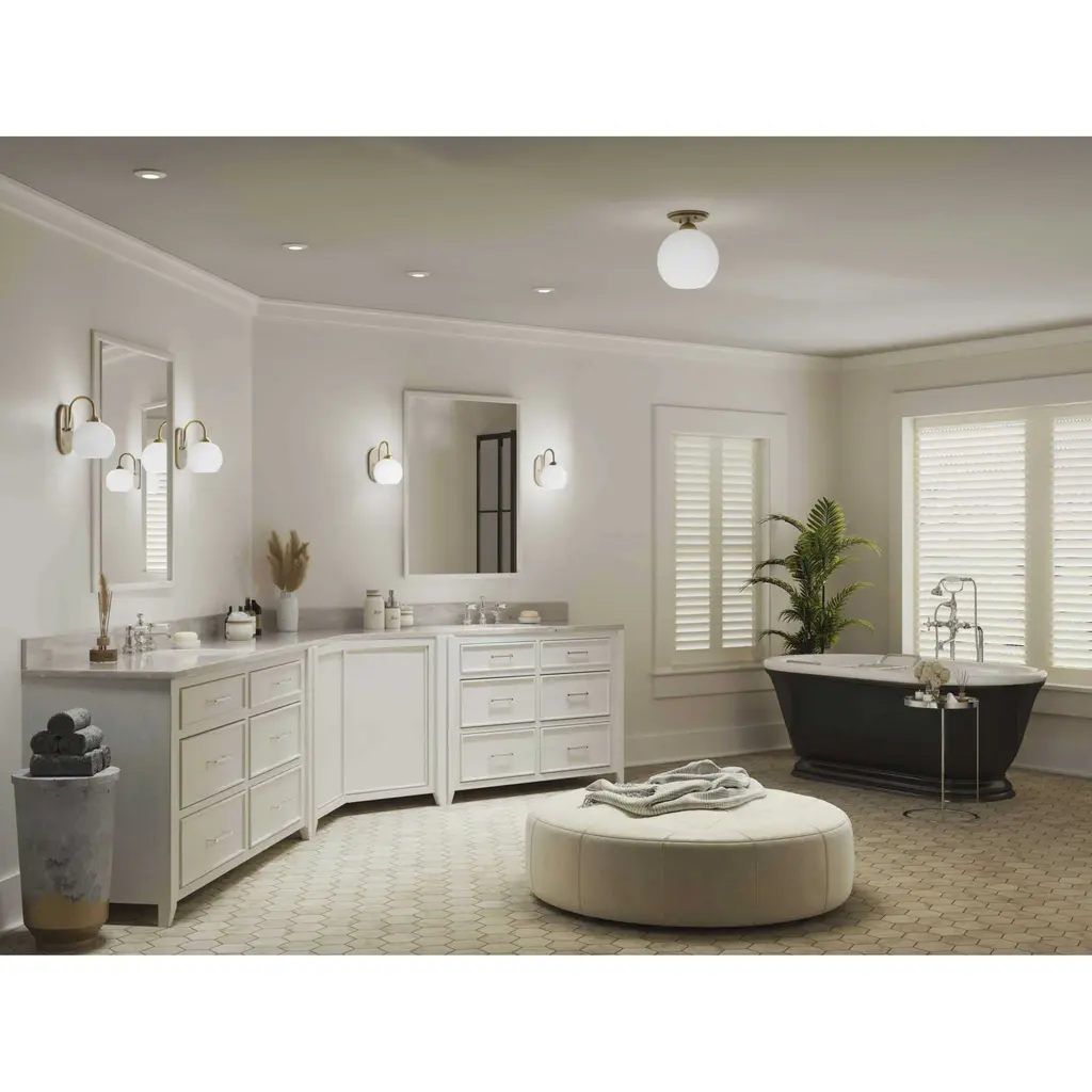 Inspired by the revival of mid-century fashions, the Carisa collection brings home this classic style. A metallic finish supports glossy white glass globes to create a timeless modern design. Flush Mount in a Vintage Gold finish.