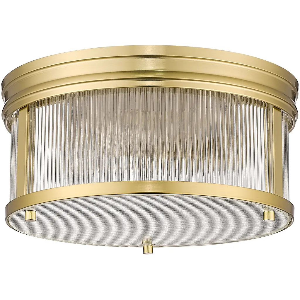 Chic ribbed glass brings an elevates sensibility to the transitional framework of a modern two-light flush mount ceiling light. Its modern gold finish provides striking warmth and glam elegance, perfect for an entryway, living area, or bedroom.