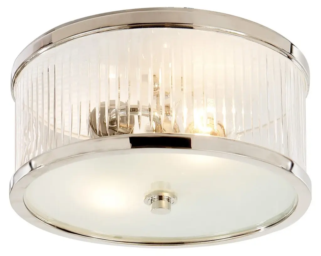 Chic ribbed glass brings an elevates sensibility to the transitional framework of a modern two-light flush mount ceiling light. Its modern gold finish provides striking warmth and glam elegance, perfect for an entryway, living area, or bedroom.