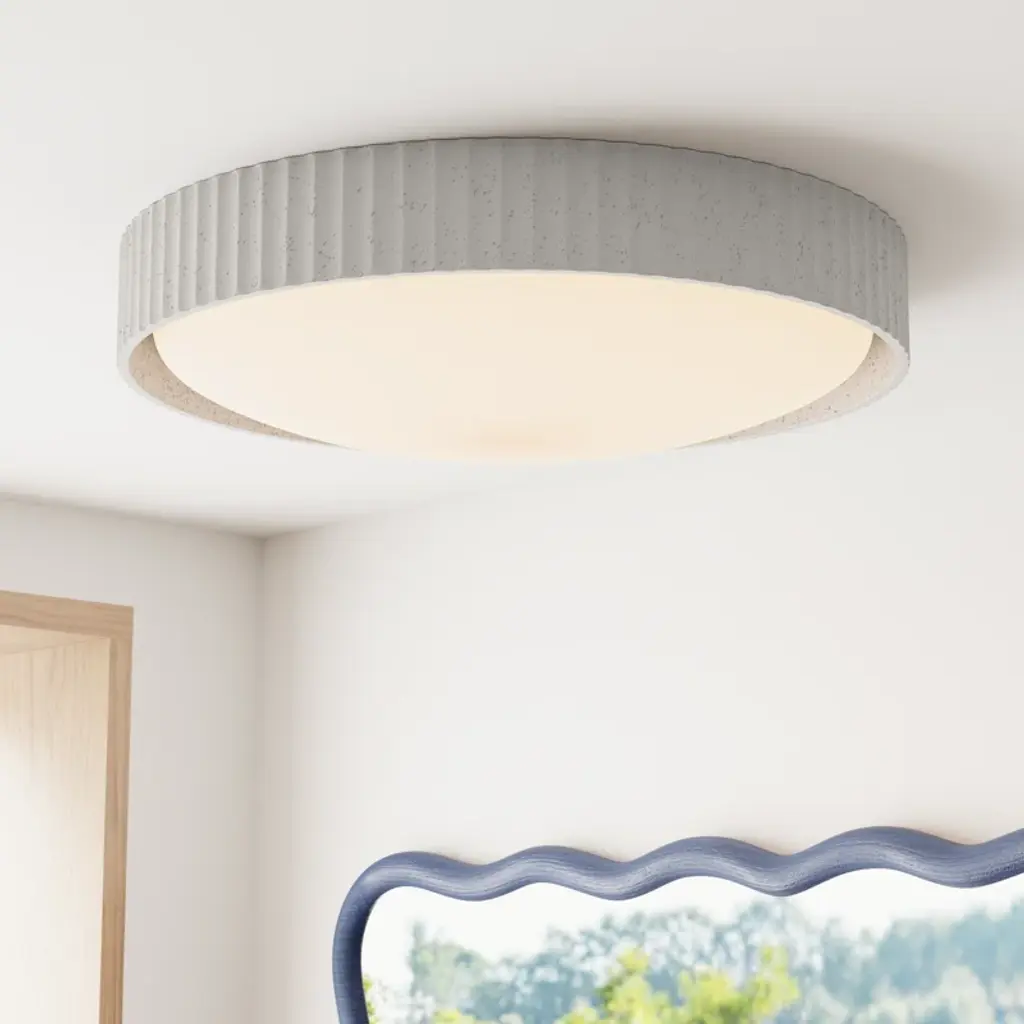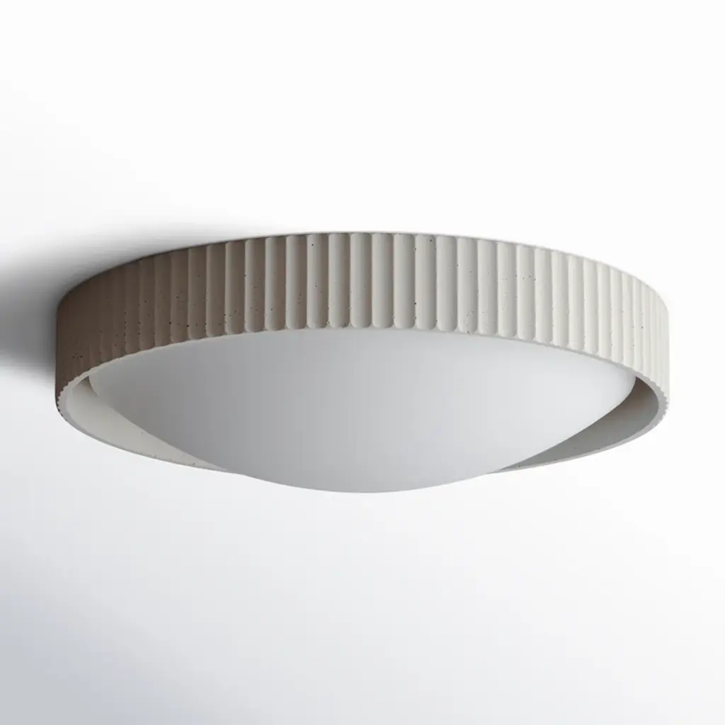 Deep pans of cast concrete in a traditional scalloped edge house LED integrated light sources behind curved opal white acrylic diffusers. Reminisce in the classical forms that benefits from the organic texture of cast concrete to add character to the design.