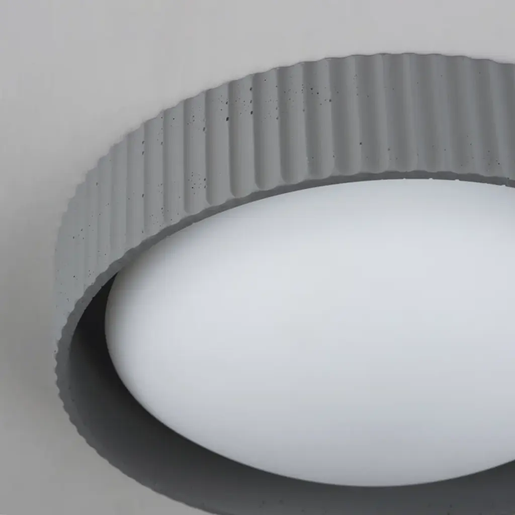 Deep pans of cast concrete in a traditional scalloped edge house LED integrated light sources behind curved opal white acrylic diffusers. Reminisce in the classical forms that benefit from the organic texture of cast concrete to add character to the design.