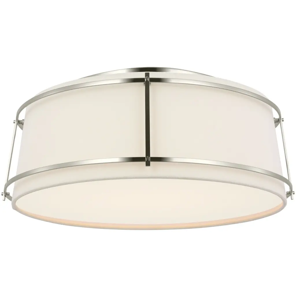 Callaway Small Flush Mount in Polished Nickel with Linen Shade and Frosted Acrylic Diffuser