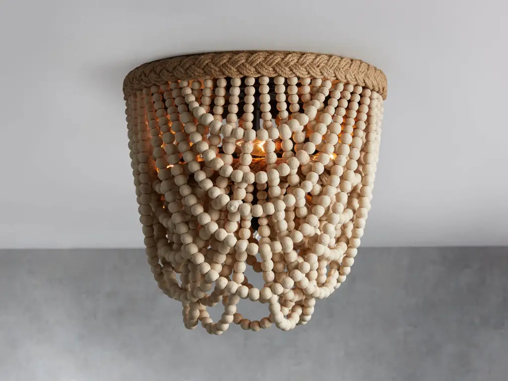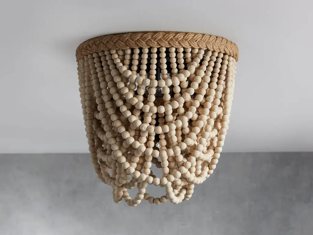 Thoughtfully crafted to make a statement in any room, our coastal-inspired Cascade Collection features overlapping layers of distressed mango wood beads artfully strung in cascading waves.