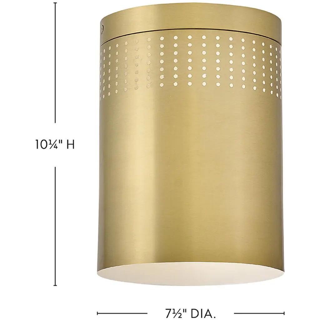 Casey 1 Light 7.5 Inch Lacquered Brass Flush Mount Ceiling Light