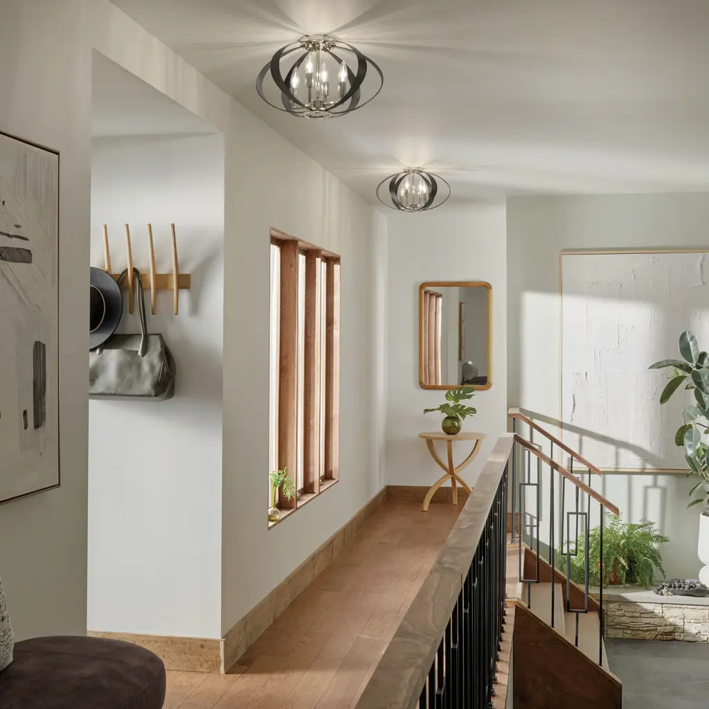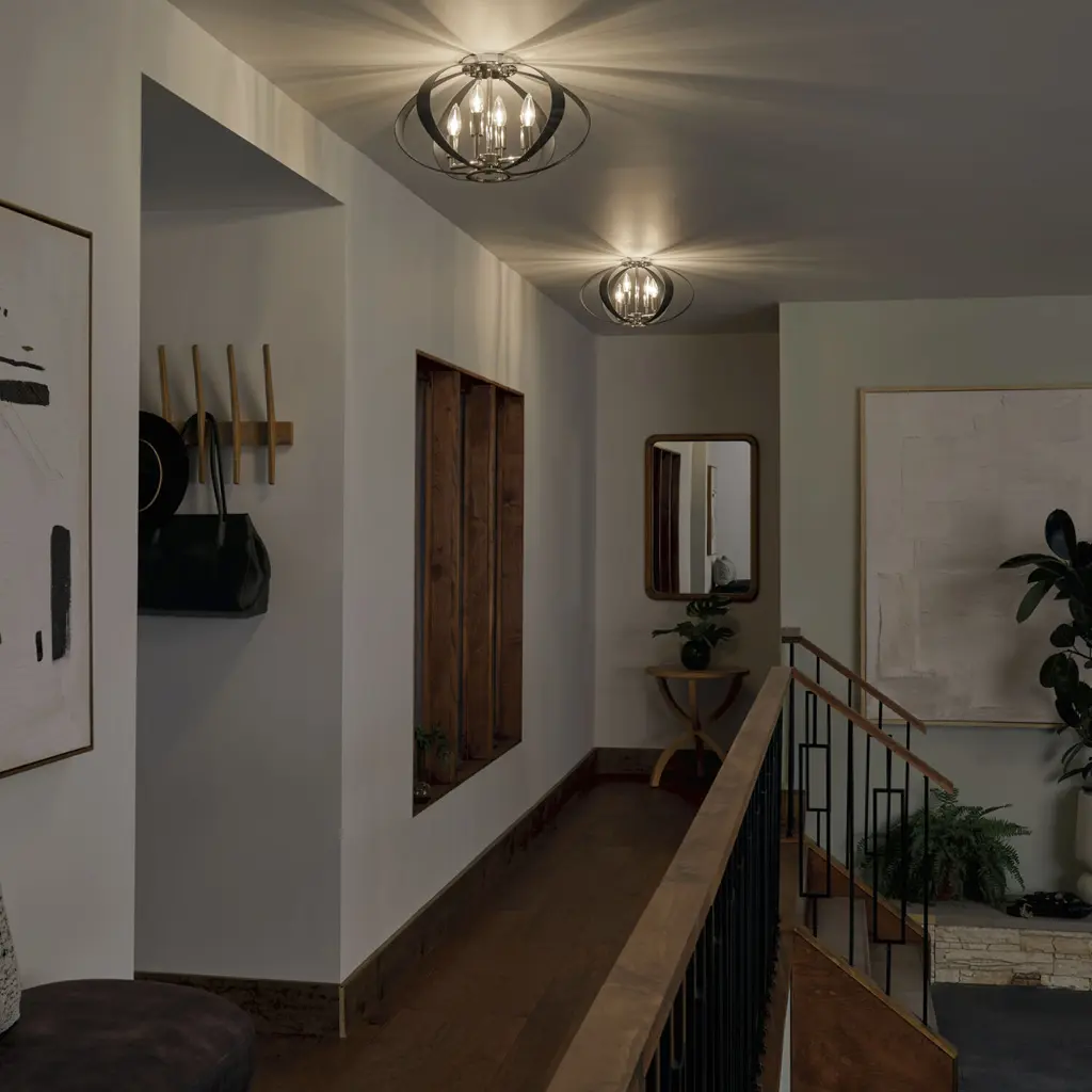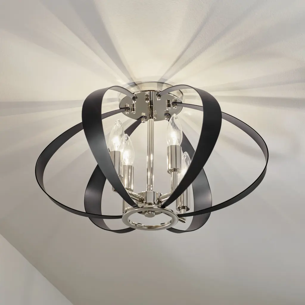 Cecil 17.75 Inch 4 Light Oval Flush in Polished Nickel and Black