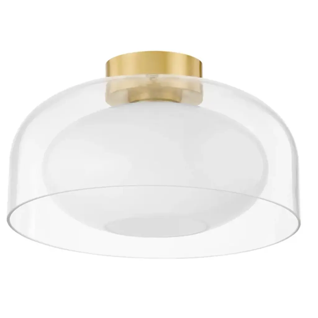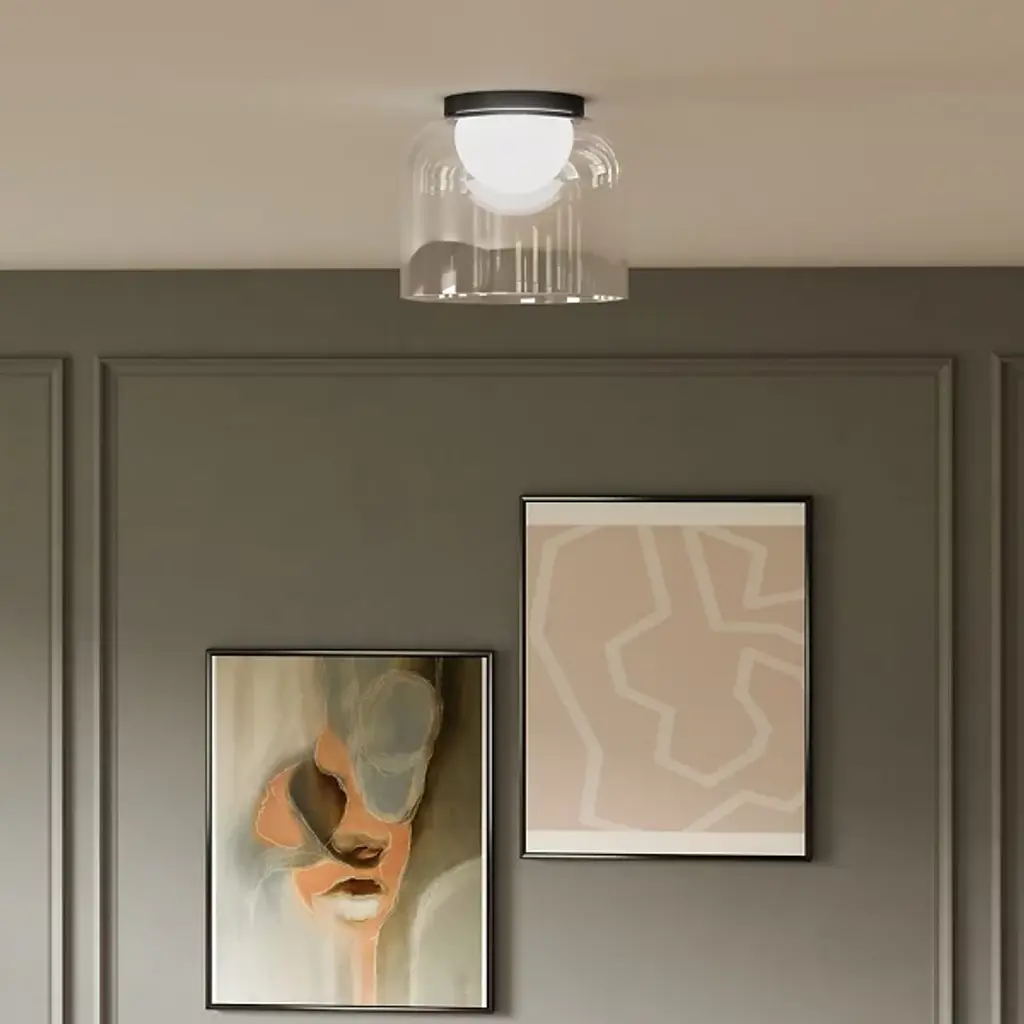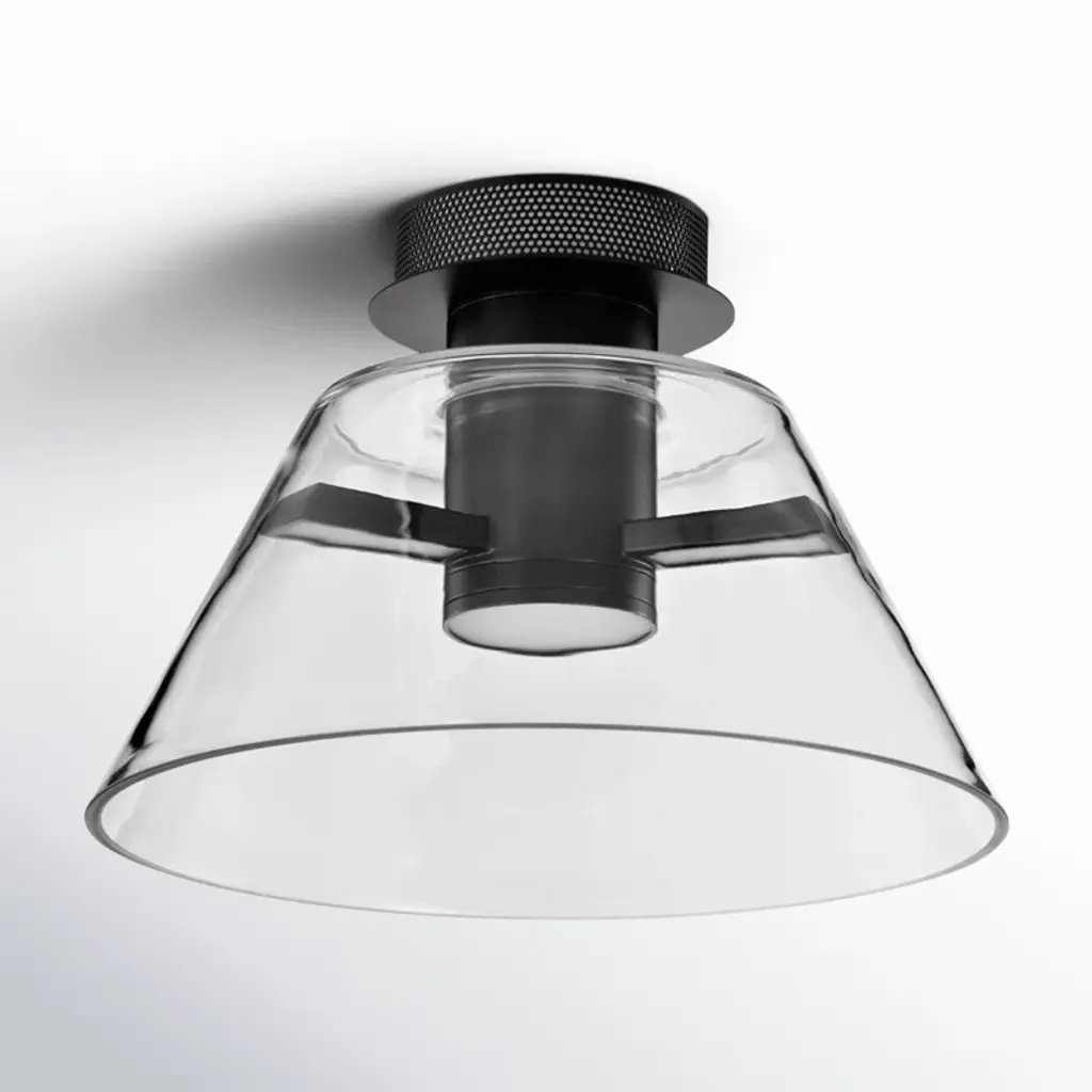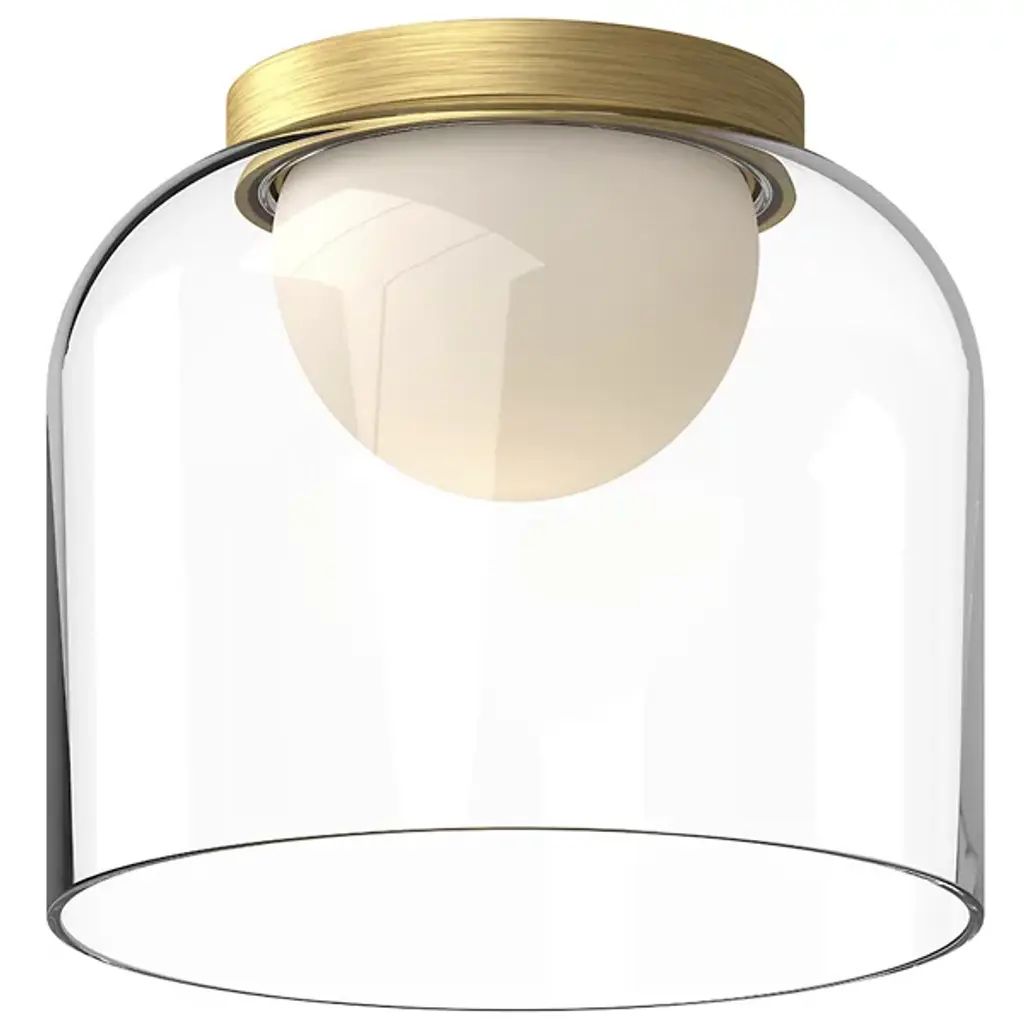 Eloquent elegance with a touch of whimsy. The Cedar LED Flushmount from Kuzco Lighting enhances interiors, pairing contemporary simplicity with a welcome touch of intricacy. A circular aluminum canopy secures the fixture, setting a strong LED lamp beneath a half-globe of translucent glass and transforming bright glare into a pleasing glow. A clear glass cup shade extends around the orb, adding a glittering accompaniment to the enchanting ambiance.