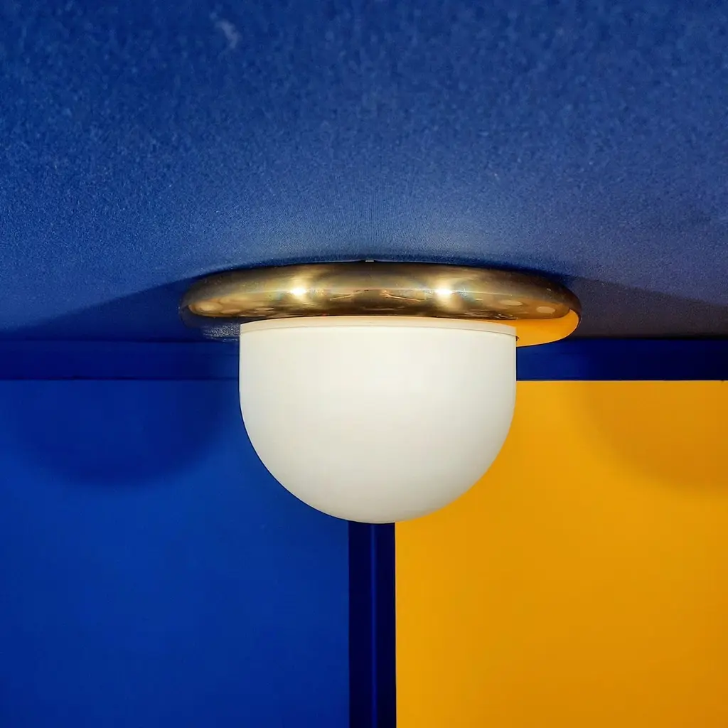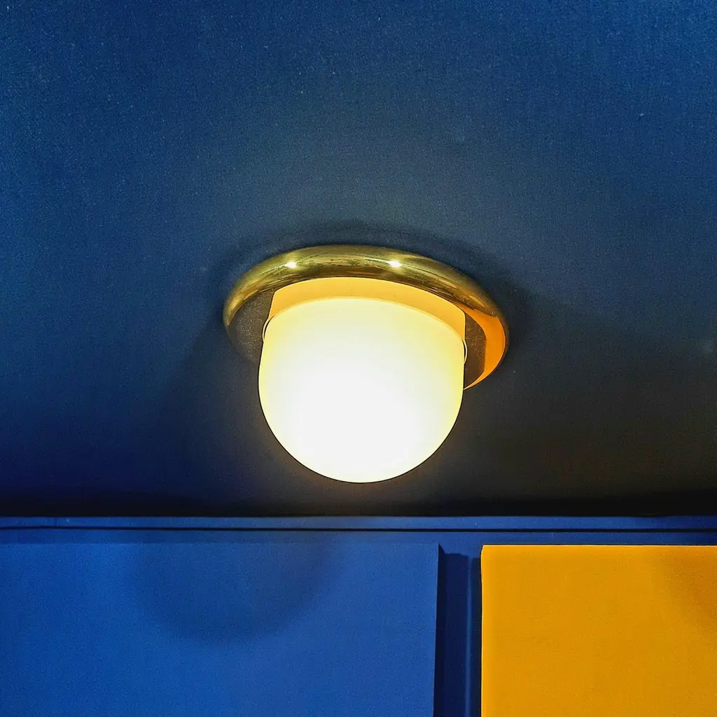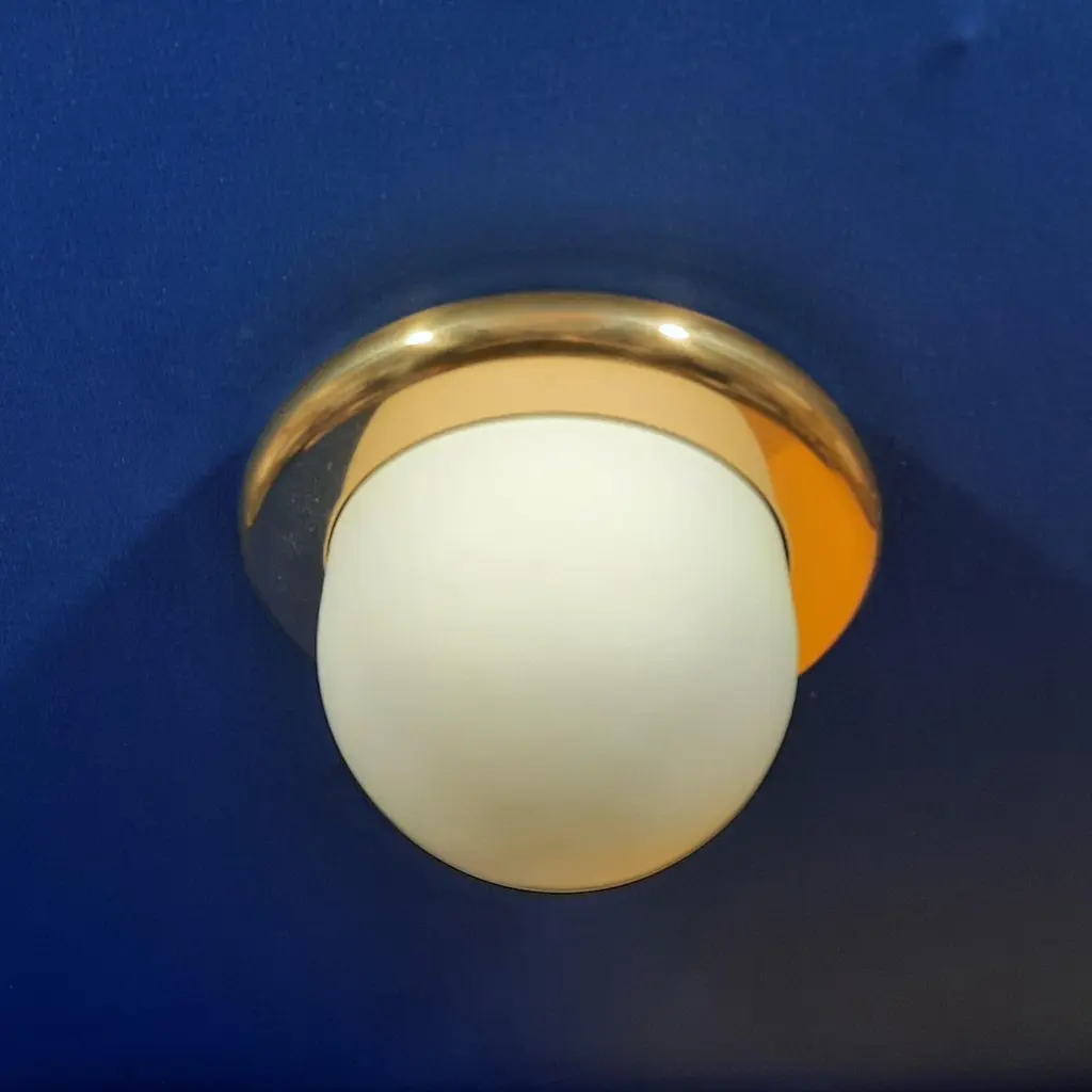 Ceiling Flush Mount 1960 Italian White Opaline With Golden Ring