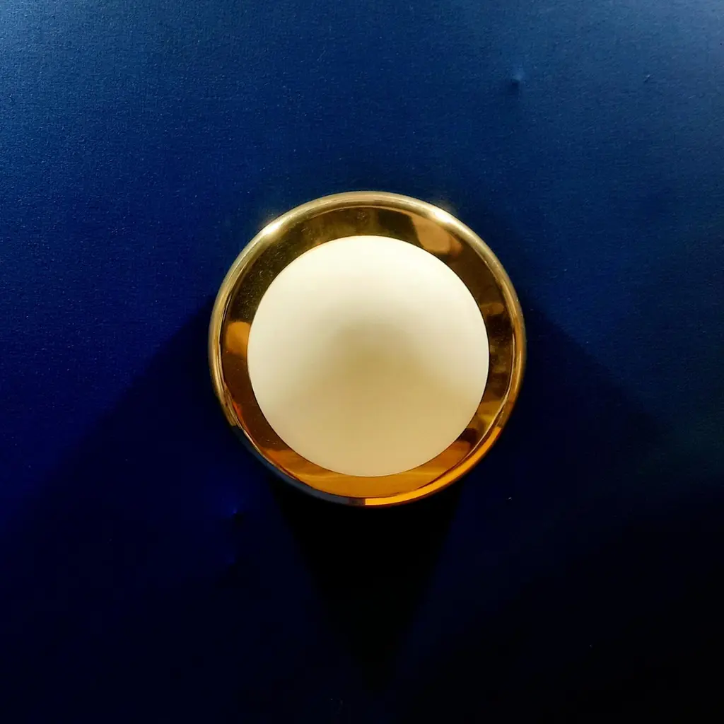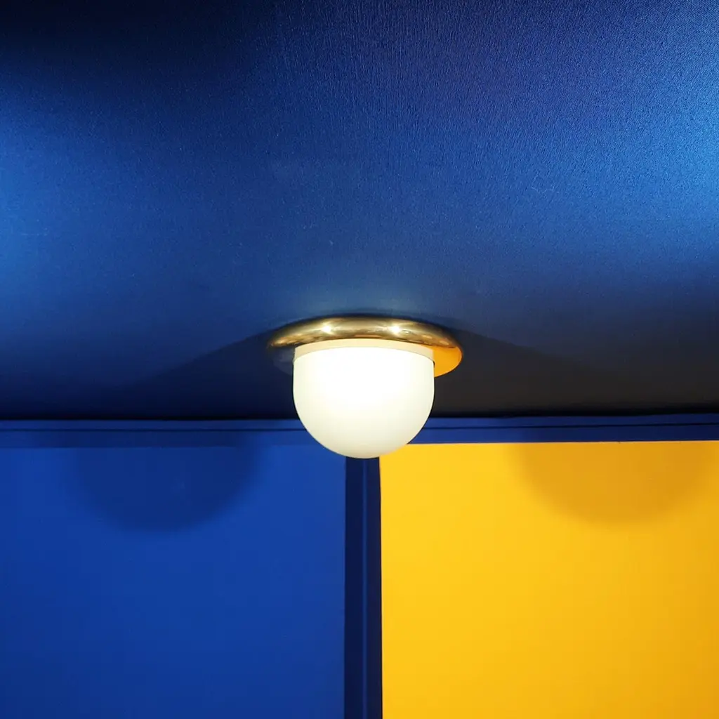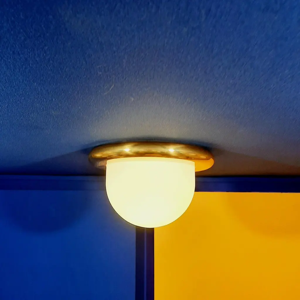 Ceiling Flush Mount 1960 Italian White Opaline With Golden Ring