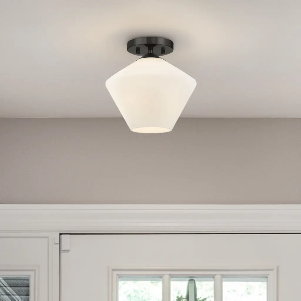 Capture a welcoming ambiance in your foyer, hallway, or pantry with the Celestial Valley 1 Light Small Flush. Featuring a modern design with diamond glass accents and matte cased white glass shades, this flush mount light brings a touch of sophistication to even the smallest spaces. Its clean lines and versatile style seamlessly blend with both contemporary and classic interiors. Whether brightening a welcoming entryway or adding a warm, inviting glow to functional areas, the Celestial Valley flush light delivers a polished and elegant look that elevates any room.