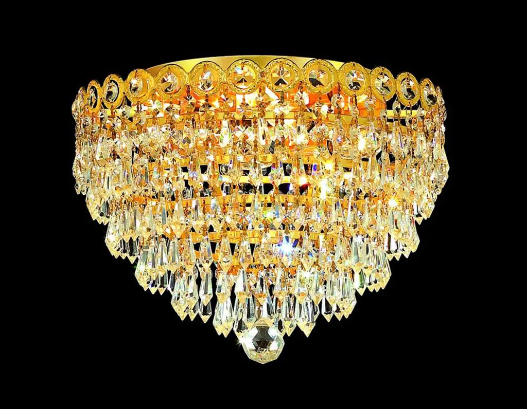 1902 Century Collection Flush Mount D14in H10in Lt:4 Gold Finish (Royal Cut Crystals)