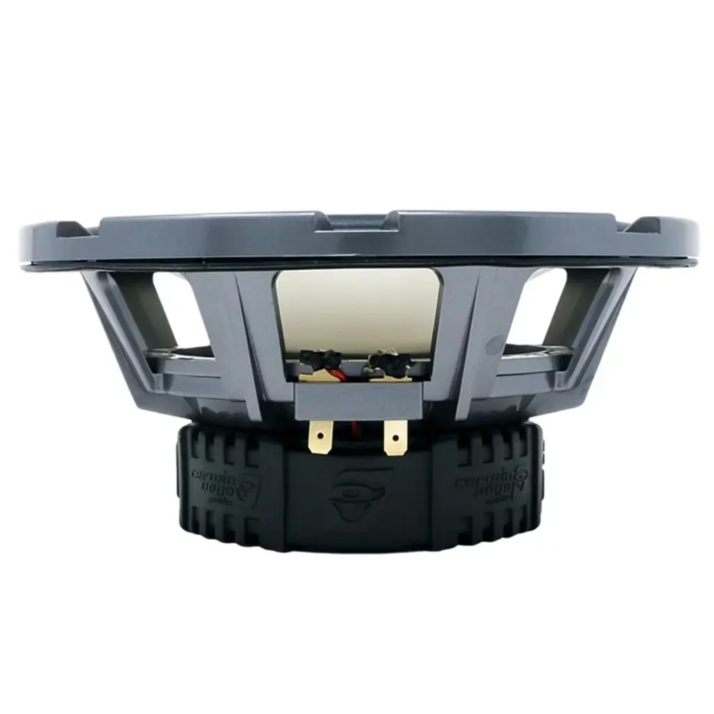 Key Features: 2-Way Speaker System: Combines a 6.5-inch woofer with a 1-inch titanium dome tweeter for balanced sound reproduction across a wide frequency range. Titanium Dome Tweeter: Ensures clear and crisp high-frequency sound, enhancing overall audio clarity. Flush Mount Design: Allows for easy and seamless installation, making the speakers less obtrusive and more aesthetically pleasing. High Temp Injection Molded Composite Basket: Provides a sturdy and heat-resistant structure for the speaker. Molded, UV-Coated, Patent-Pending Waterproof Composite Paper Cone: Designed to withstand water spray, saltwater, and UV exposure, ensuring long-lasting durability in marine and outdoor environments. Power Rating: 125 watts RMS (continuous power) and 250 watts MAX (peak power), providing ample power for robust sound output. Nominal Impedance: 4 ohms, compatible with a wide range of amplifiers and audio systems. Frequency Response: 70Hz - 18kHz, covering a broad spectrum of audio frequencies for a full and rich sound experience. Ferrite Magnet Motor Structure with Max Xmax Suspension: Enhances the speaker’s ability to produce deep bass and maintain stability during high excursions. Specifications THIELE/SMALL PARAMETERS Impedance: 4Ω Frequency Response: 55Hz-18Khz Voice Coil Diameter: 1.75" (44.7mm) Power: 150W RMS/300W MAX Fs(Hz): 60Hz Qts: 0.802 Vas Ft³/(L): 0.3 (8.5) Sensitivity (1W/1M): 93dB Sensitivity (2.83V/1M): 96dB Xmax: 0.16: (4mm) Mounting Depth: 3.15" (80mm) Cut-out Diameter: 7.13" (181mm) Features Water Spray and Salt Water Resistant, 100% UV Stable Ferrite Magnet Motor Structure With Max X-max Suspension High Temp Injection Molded Composite Basket Molded, UV-Coated, Patent Pending Waterproof Composite Paper Cone Integrated RGB LED Lighting - LED Controller Sold Separately (ITEM: RPMDLED)