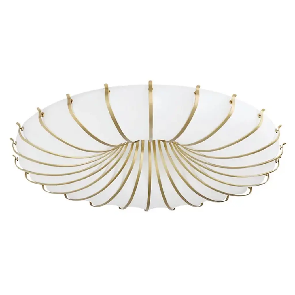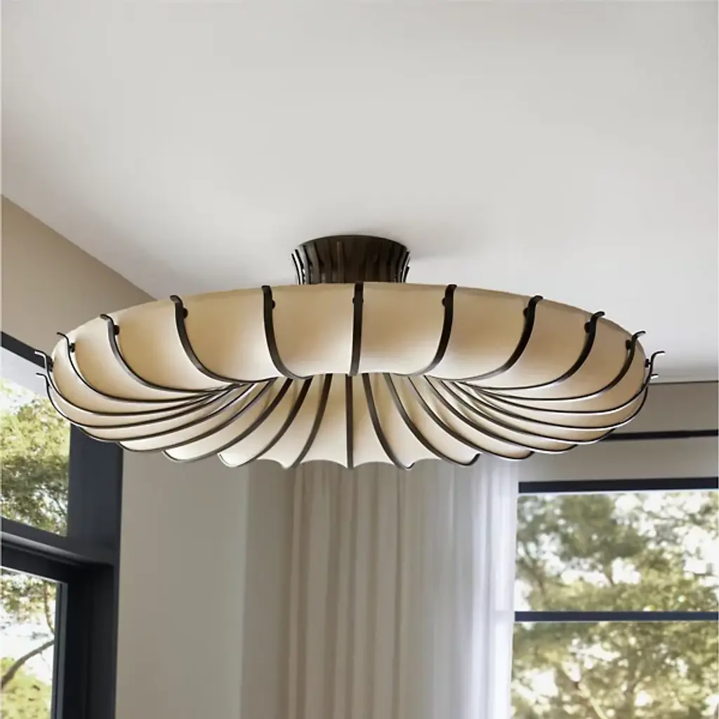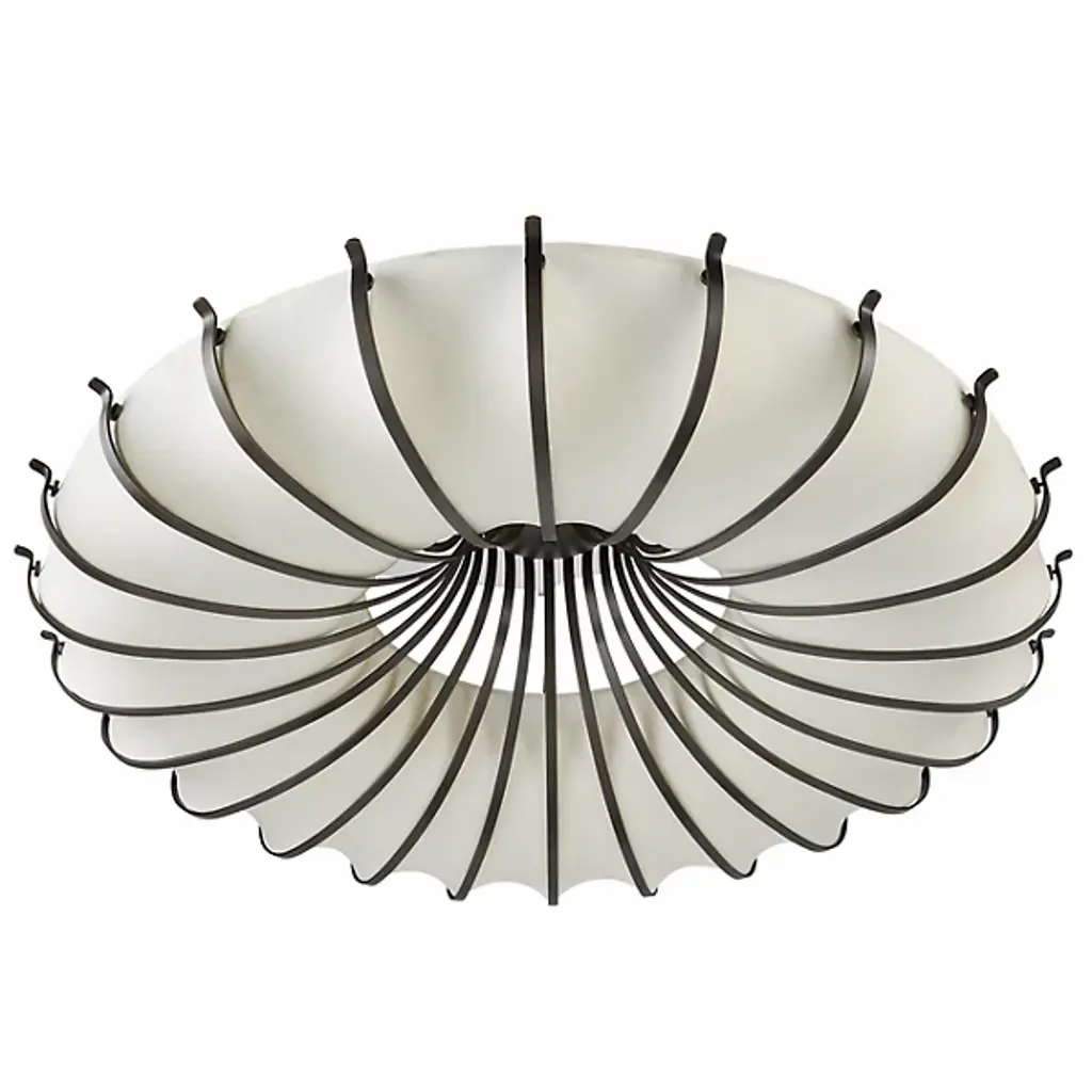 Inspired by the natural world, the Chambers Flushmount from Arteriors features a jellyfish-inspired steel armature finished in elegant English bronze, creating a captivating illusion of depth. The design is further enhanced with waves of ivory faux vellum, adding a rich, textural glow to any space. This unique blend of floral and faunal elements makes for an impactful statement piece. Each fixture boasts a unique finish, ensuring a distinct and personalized touch to your decor.