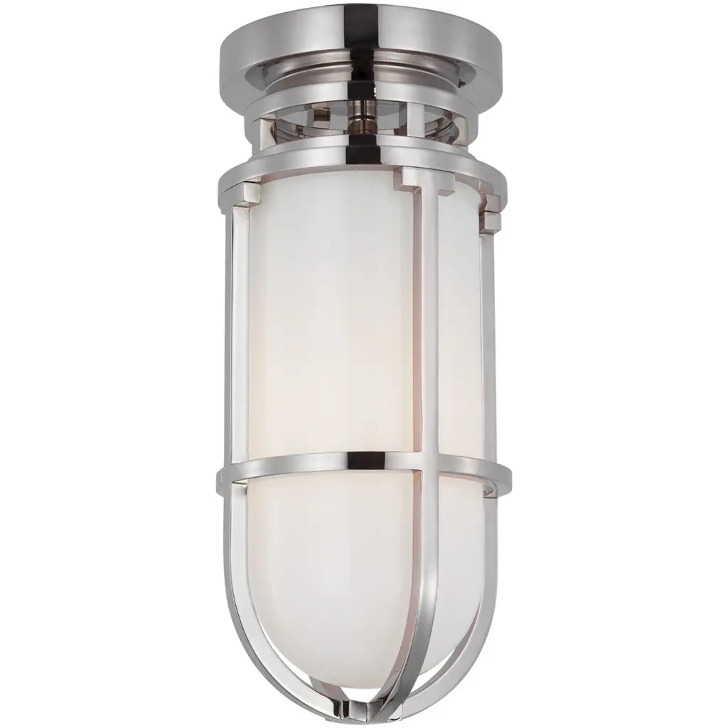 Gracie Tall Flush Mount in Antique-Burnished Brass with White Glass
