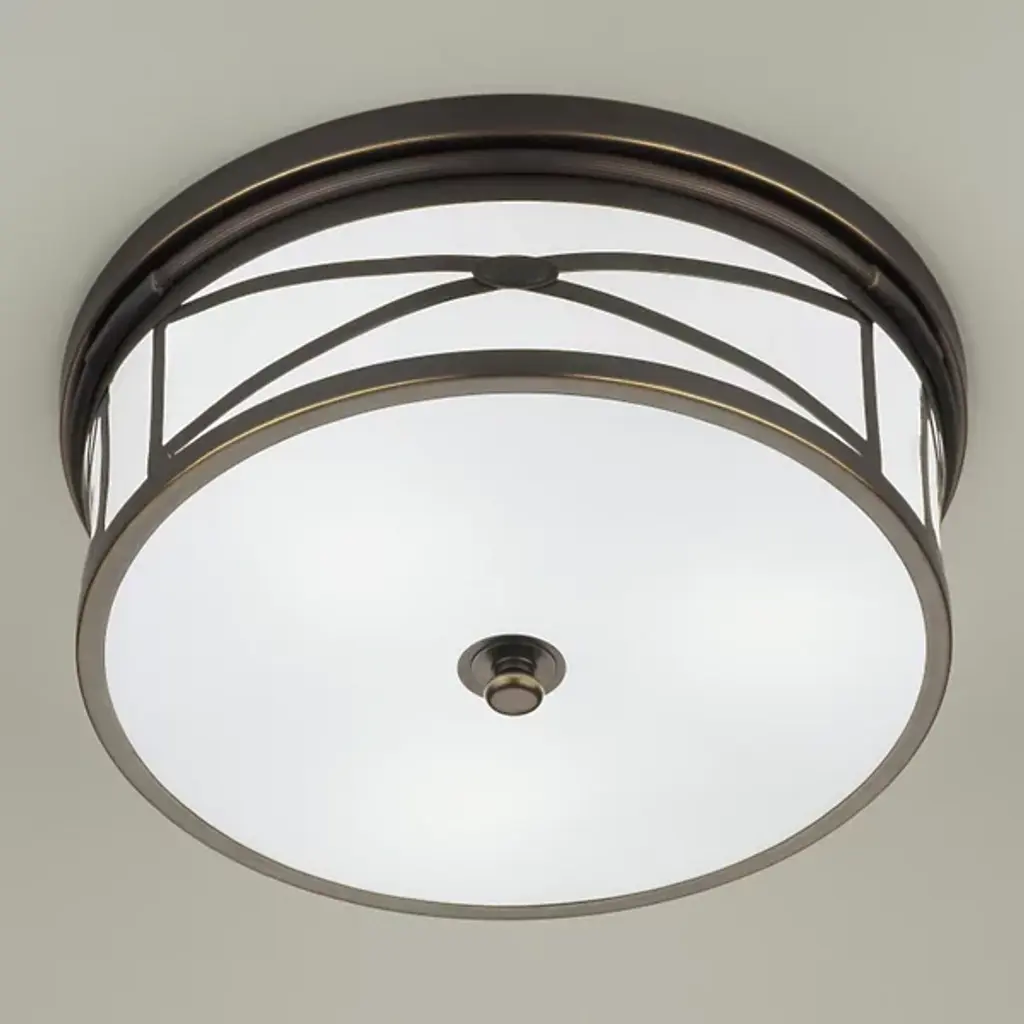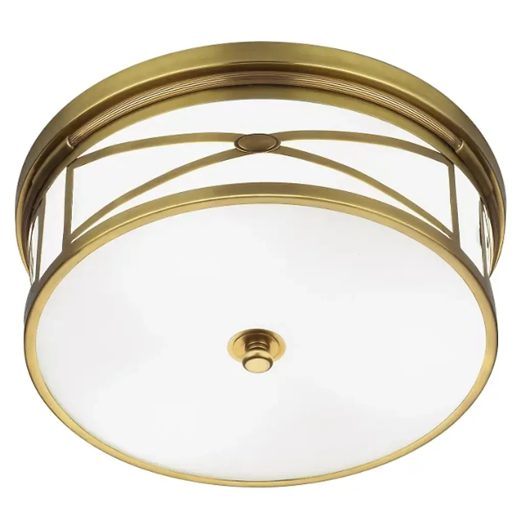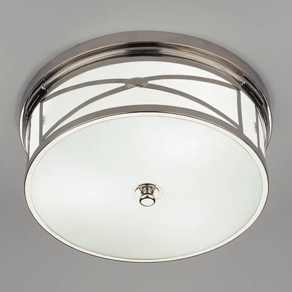 The Robert Abbey Chase Flushmount displays a finely crafted cage of framed x's surrounding a circular footprint distinguishing this flushmount ceiling light. The Chase Flushmount features a Frosted White glass shade and steel body.