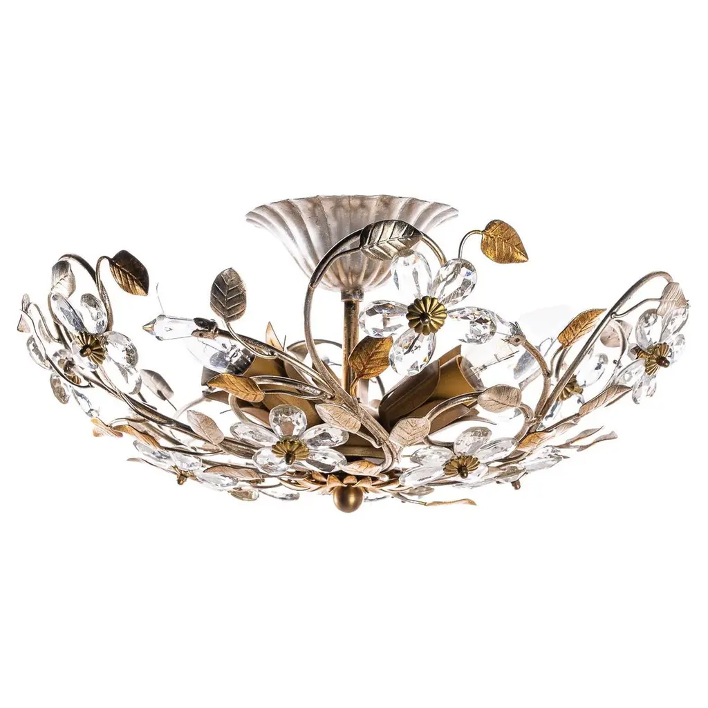 Cheshire Hollywood Regency Gold Leaf Metal Flush Mount