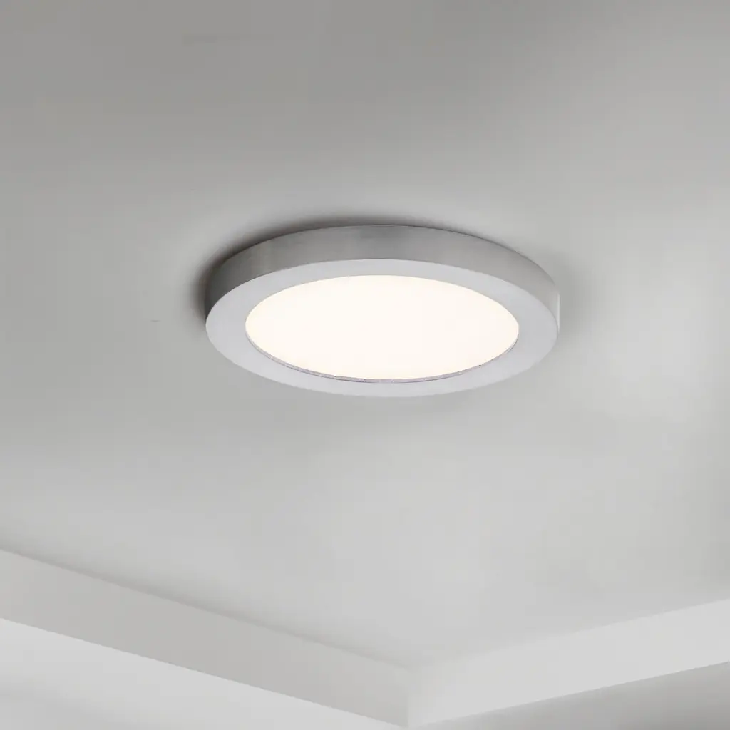 The entry level Wafer model features driverless technology with the same great look. Manufactured of a plastic shell with aluminum backing, the Chip brings all the look of the Wafer at economical pricing for residential applications. The bright and even lighting effect is delivered by edge-lit technology offering an upscale surface mount solution to substitute recessed can lighting.