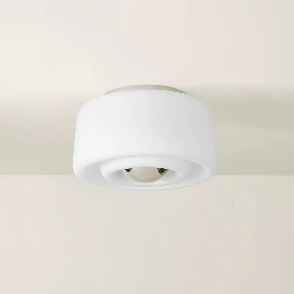 Defined by deep grooves that resemble ripples, the Opal Glass shade of Ciela creates a striking filter for light. Resembling a pebble dropped into water, an oversized, dome-shaped bottom finial completes the artful reference. The mixed materials of opal glass and metal form a fresh and contemporary juxtaposition that complements this thoughtful design.