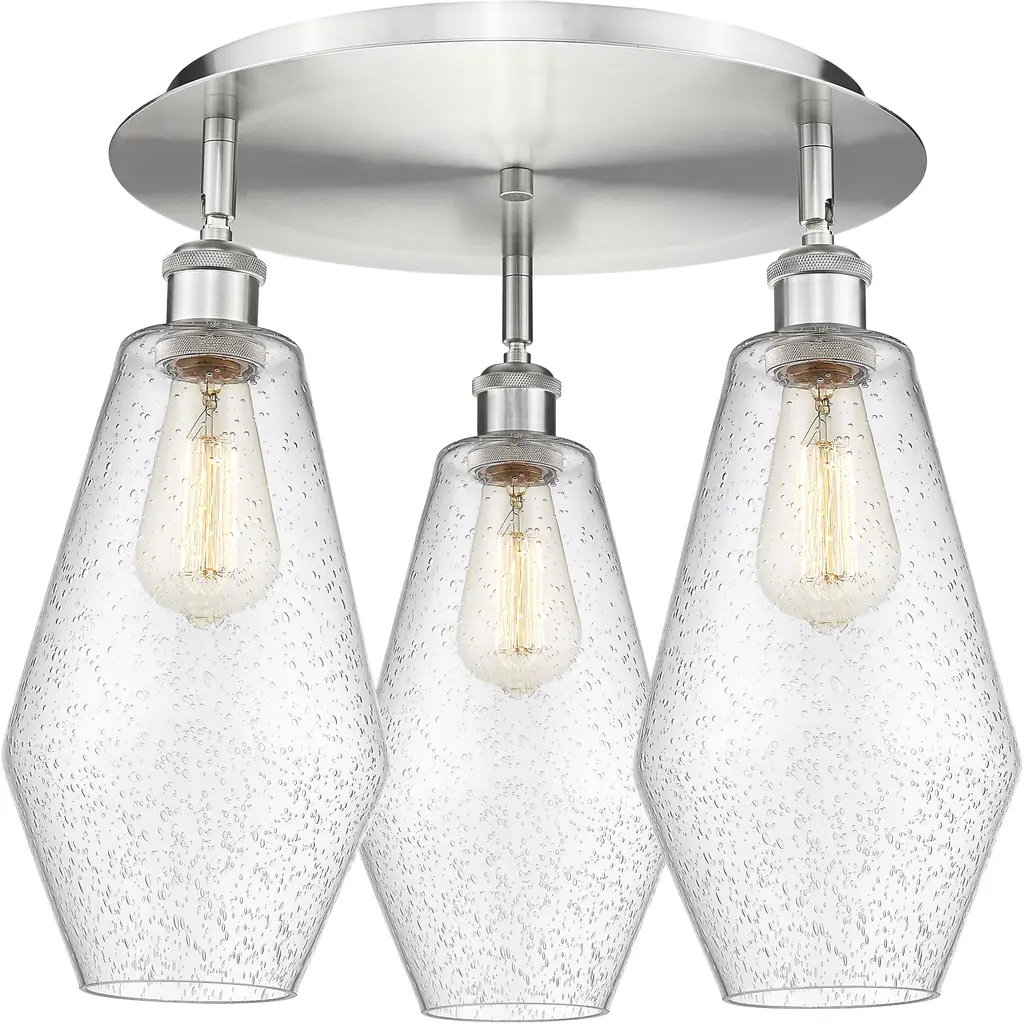 Cindyrella - 3 Light 19" Flush Mount - Antique Brass Finish - Seedy Glass Shade