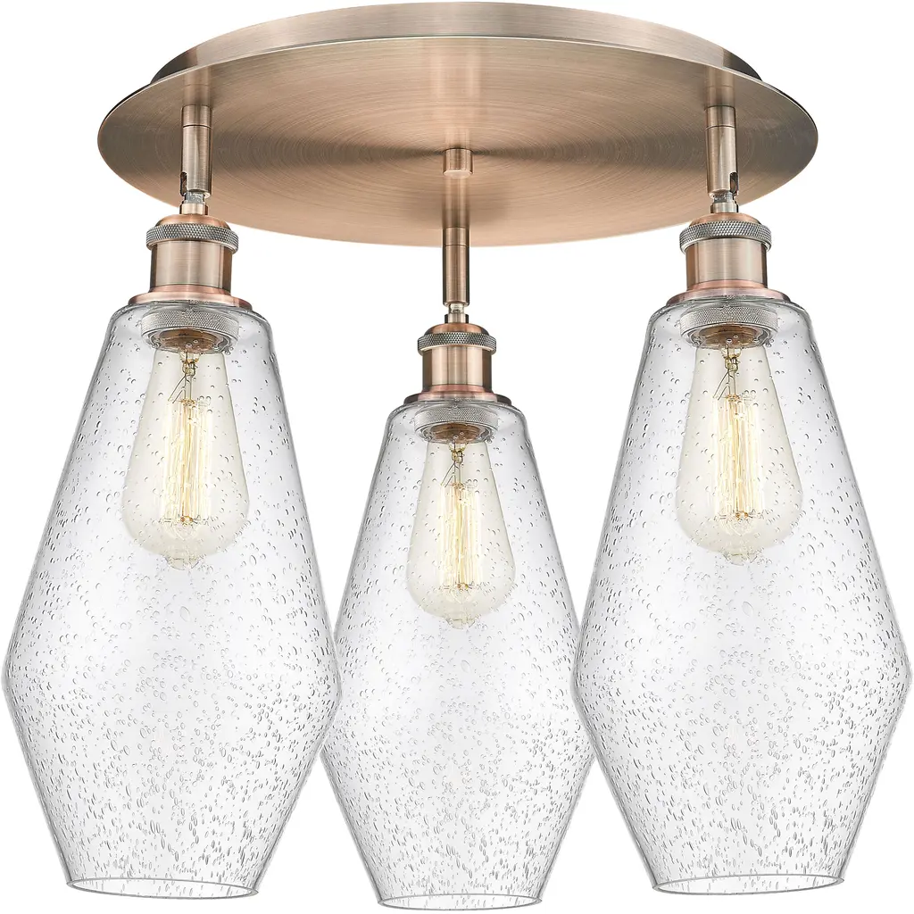 Cindyrella - 3 Light 19" Flush Mount - Polished Chrome Finish - Seedy Glass Shade