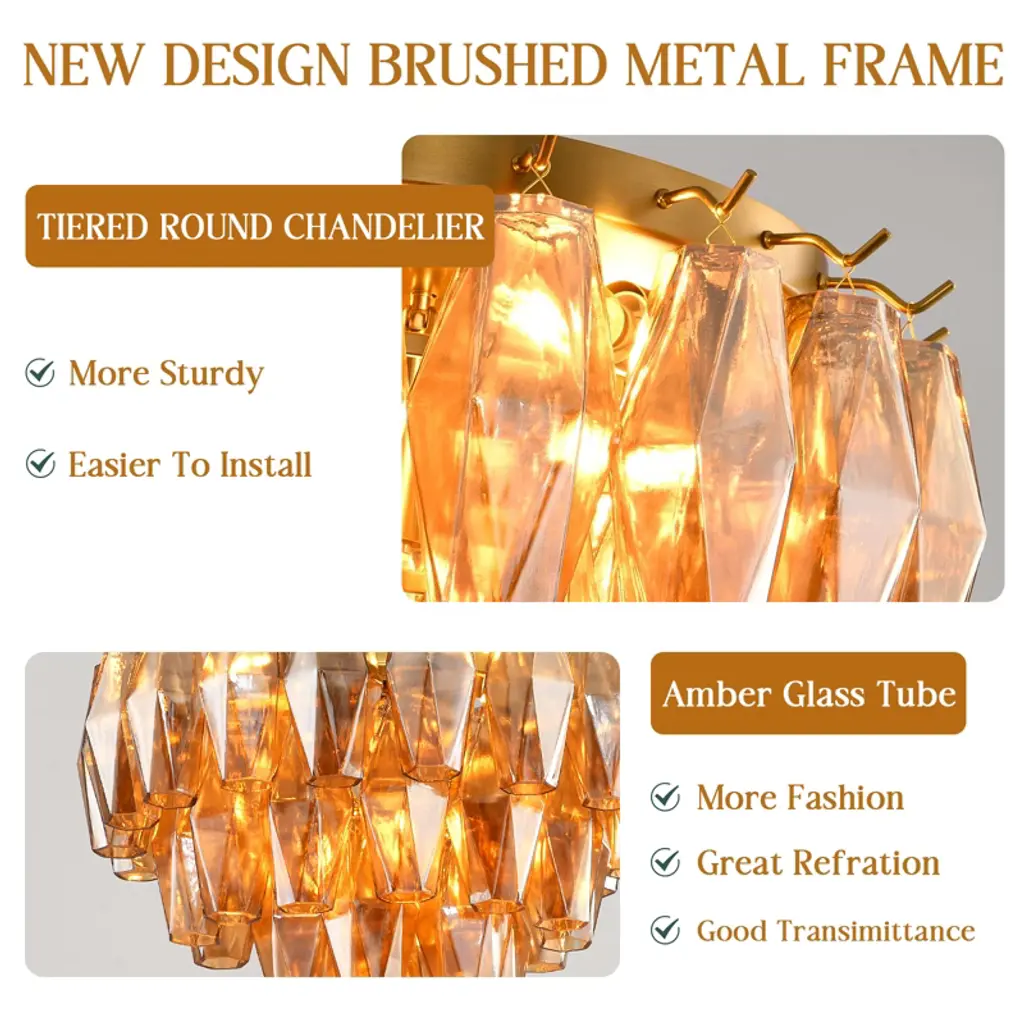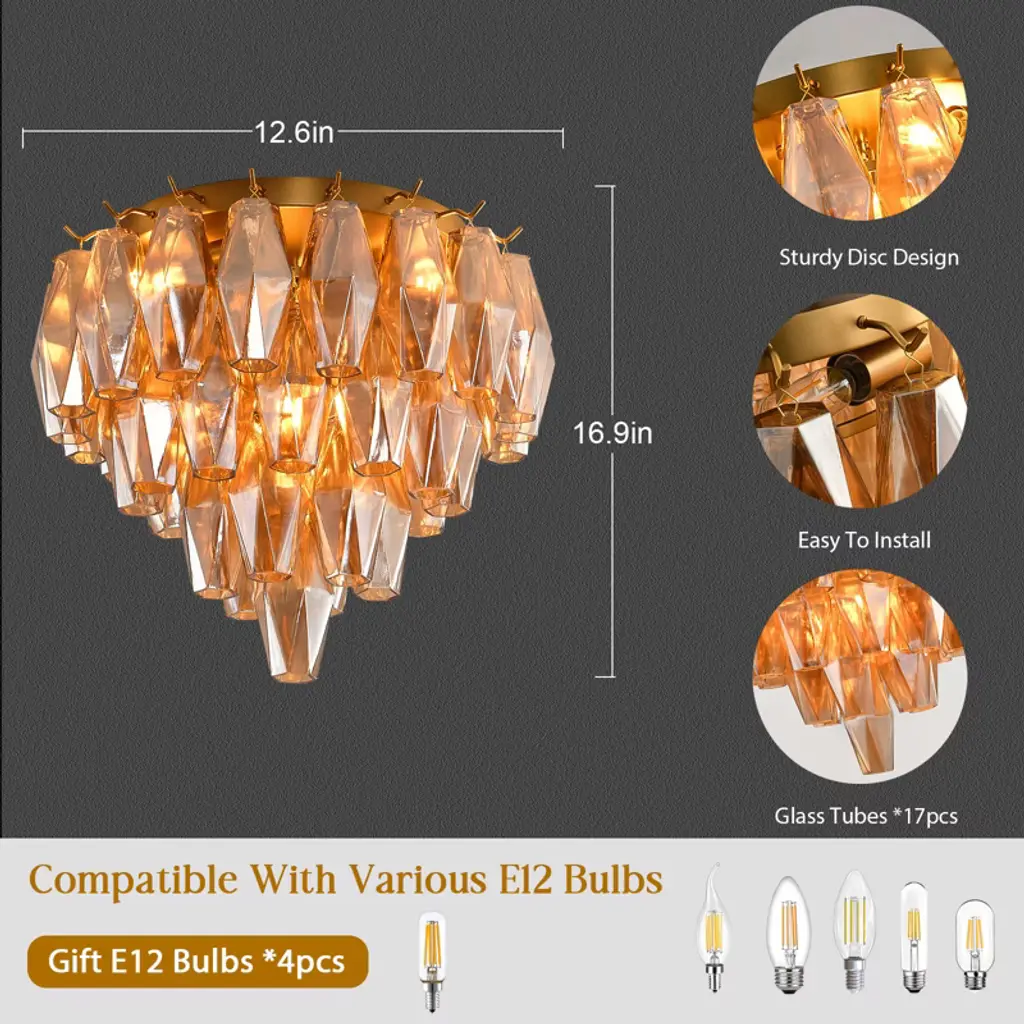 Cityfurn 4-light Modern Tiered Glass Chandelier Flush Mount Ceiling Light